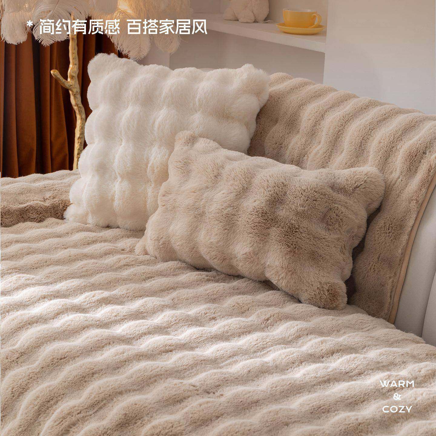 冬季兔毛绒沙发垫加厚毛绒坐垫子防滑皮沙发套罩高档北欧简约冬款