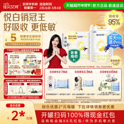 荷兰进口佳贝艾特婴幼儿羊奶粉悦白3段800g+150g低敏好吸收扫红包