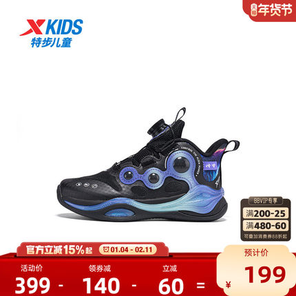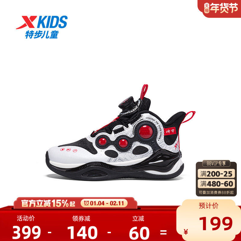 【商场同款】特步童鞋儿童运动鞋男童缓震耐磨小童旋转纽扣篮球鞋