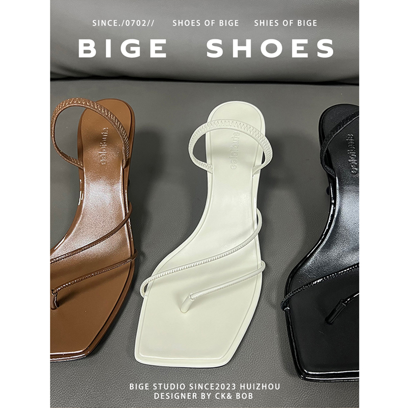 法式复古细带方头露趾凉鞋女2024女新款夏季气质夹趾小猫跟高跟鞋