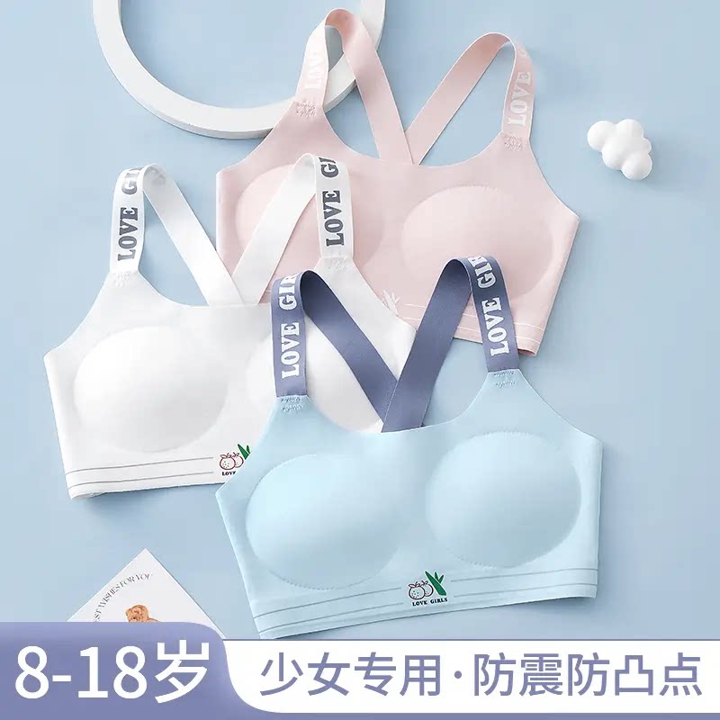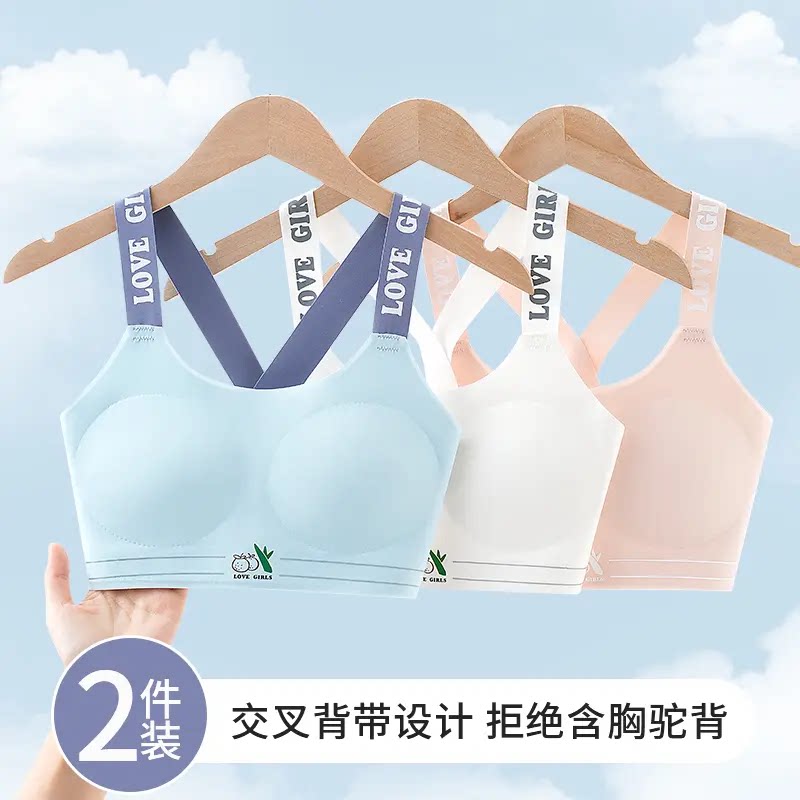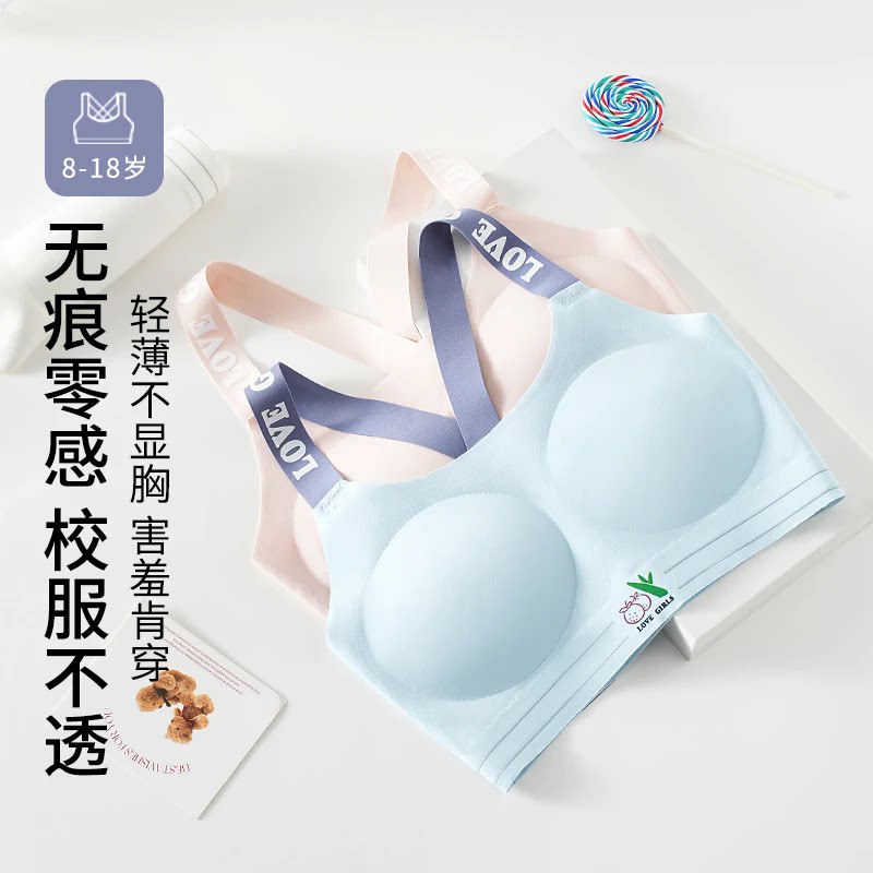知音草【凉感纱】32A抗菌防震少女文胸无痕交叉美背发育期内衣