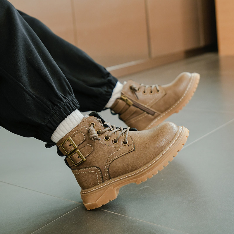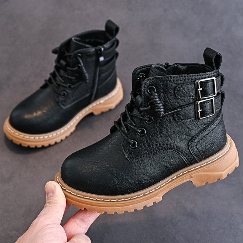男童马丁靴2025新款秋冬防水男孩皮鞋加绒棉鞋中大童短靴儿童靴子