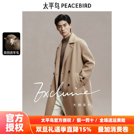【风衣式】太平鸟男装羊毛呢大衣男长款2025年秋新款双面呢外套