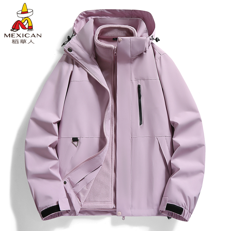 稻草人户外秋冬季新款冲锋衣女士三合一可拆卸防水保暖抗寒外套男