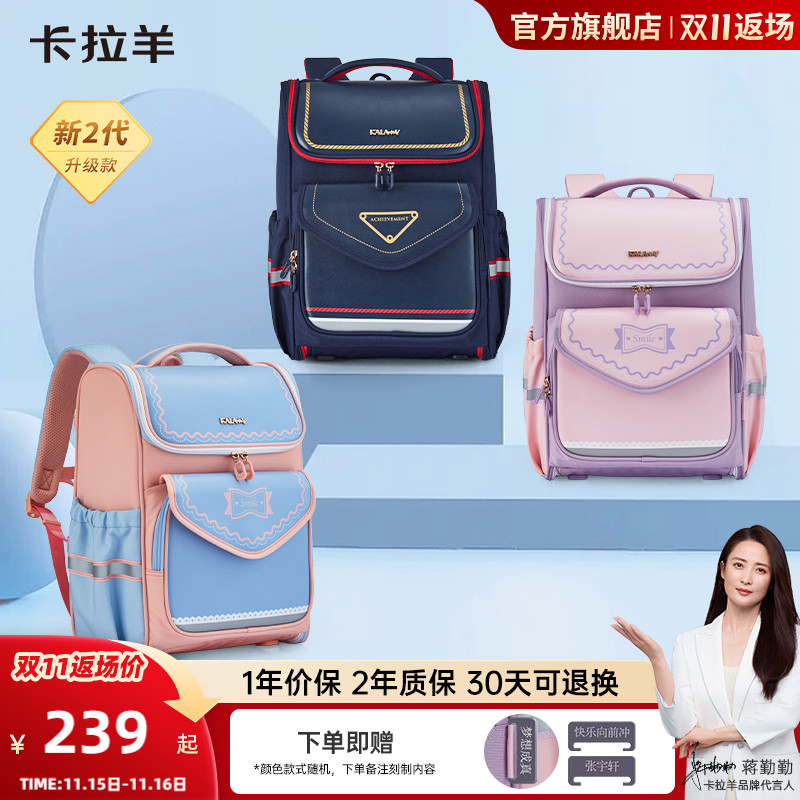 卡拉羊1-4-6年级小学生大嘴书包防下坠减负女大容量轻便男双肩包