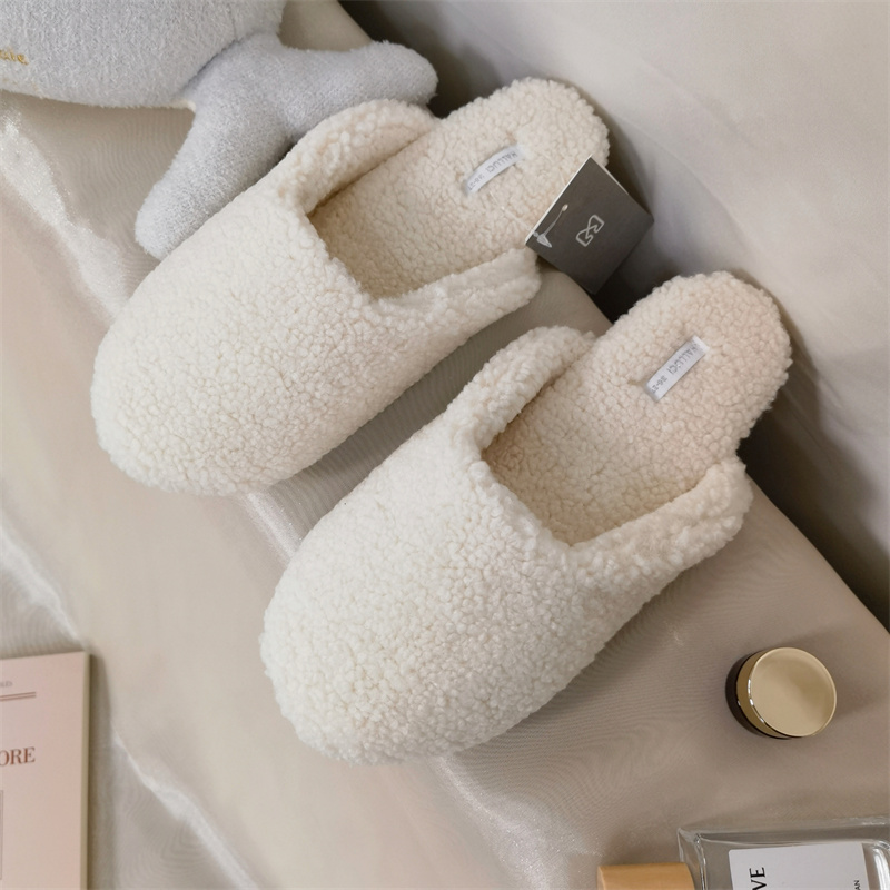 小众设计感方口纯色毛绒家居拖鞋室内防滑软底静音木地板家用鞋