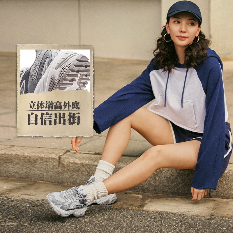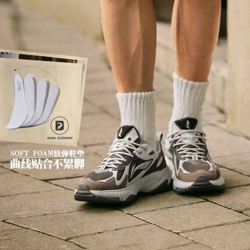 李宁休闲鞋 启星2.0 男款减震软底透气软弹厚底增高潮流复古鞋
