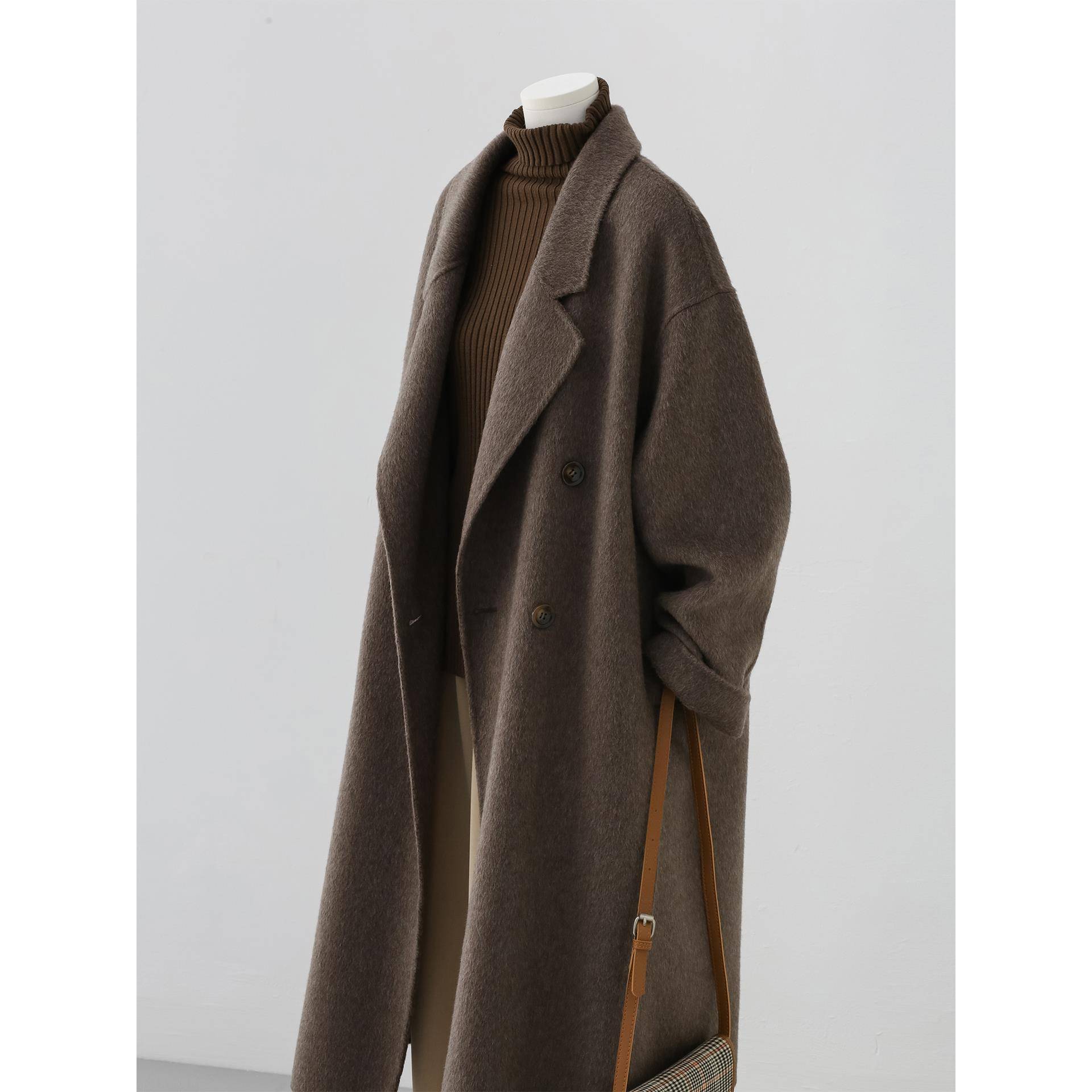 双面羊绒大衣女2025新款秋冬中长款韩系宽松高级感棕色羊毛呢外套