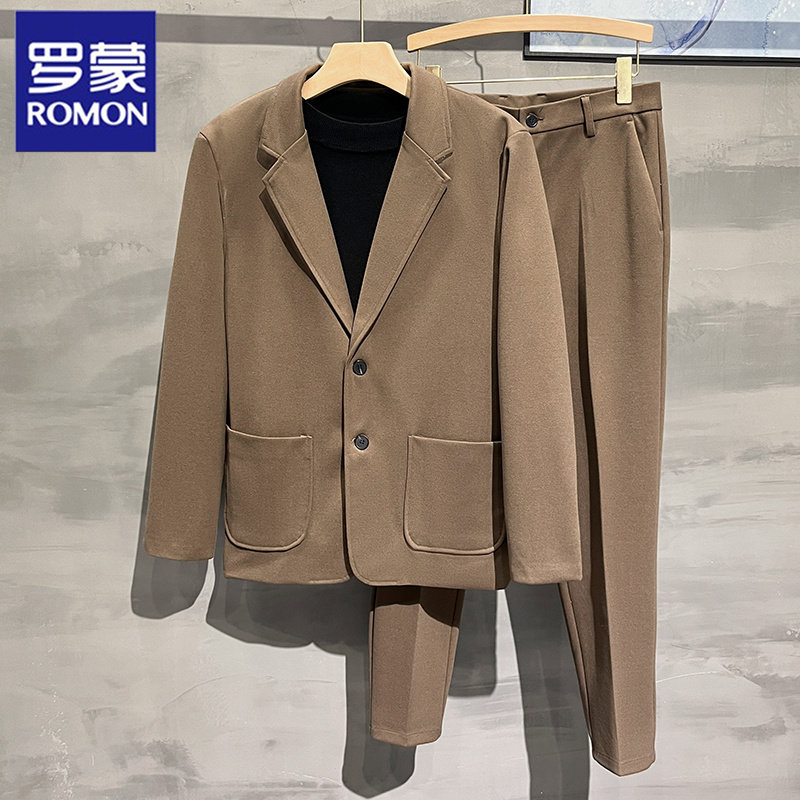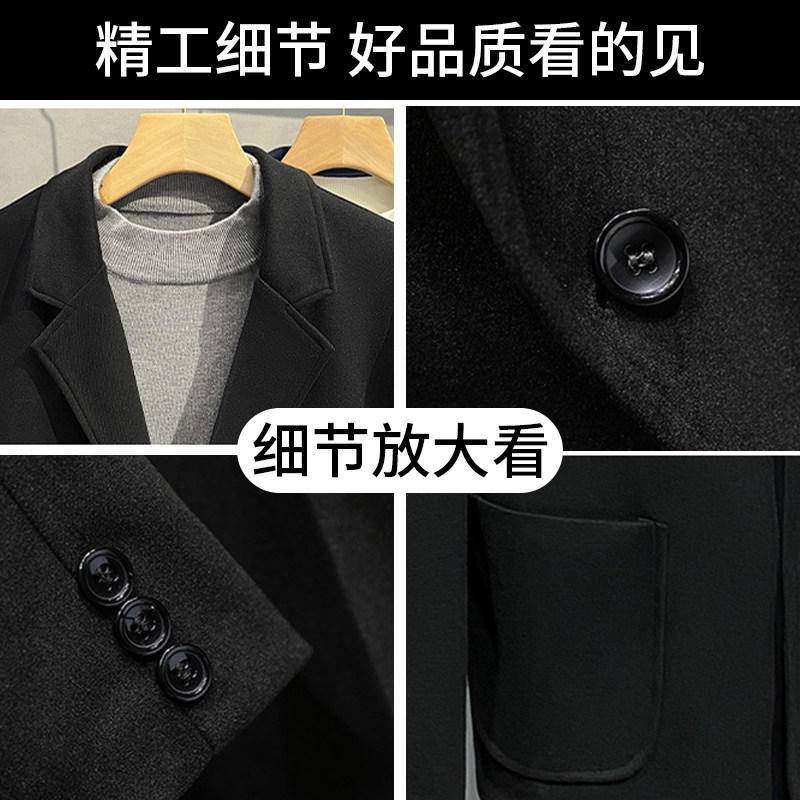 罗蒙秋冬韩版高级感毛呢小西装男士休闲西服加厚加绒呢子单件外套