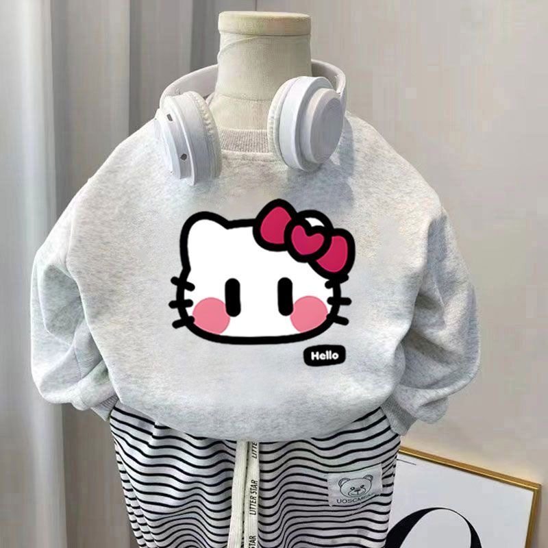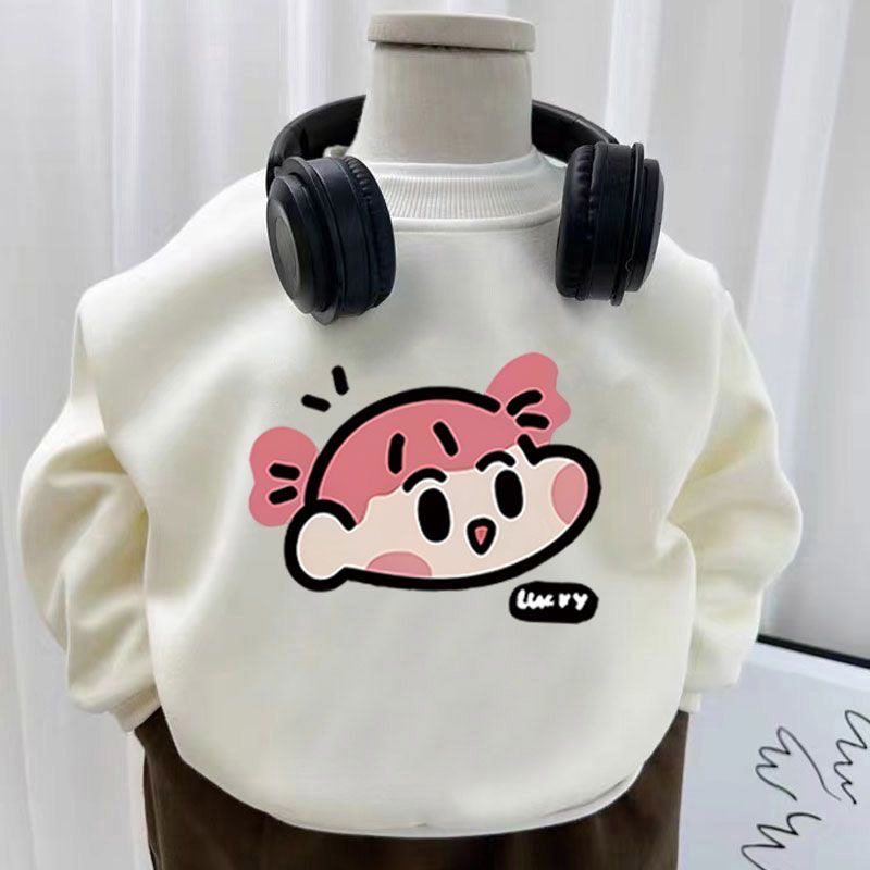 女童加绒卫衣儿童圆领加厚卡通印花上衣宝宝休闲宽松保暖套头衫潮