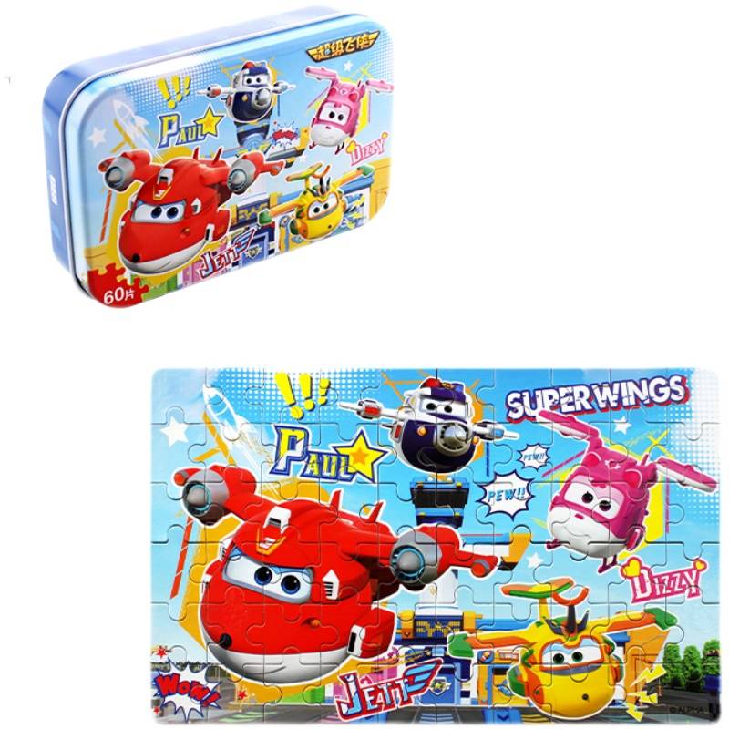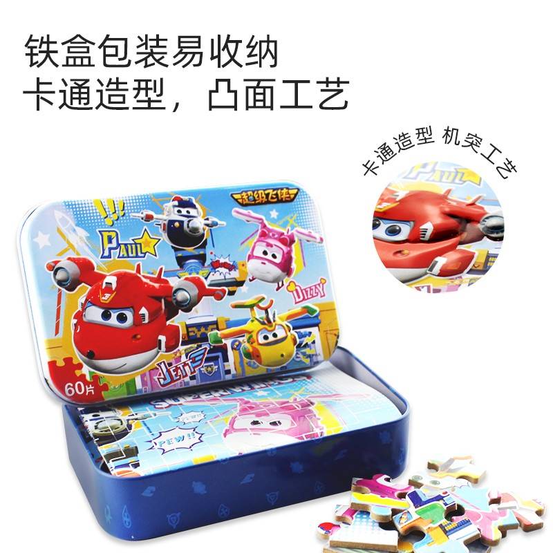 超级飞侠拼图60/100/200片木质铁盒平图3-6-8岁男孩女孩宝宝玩具