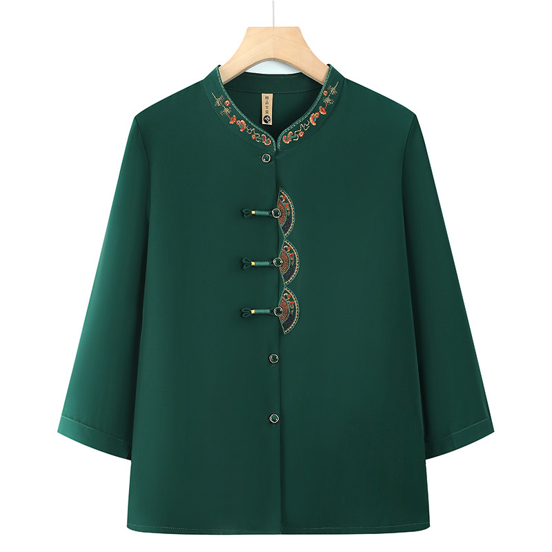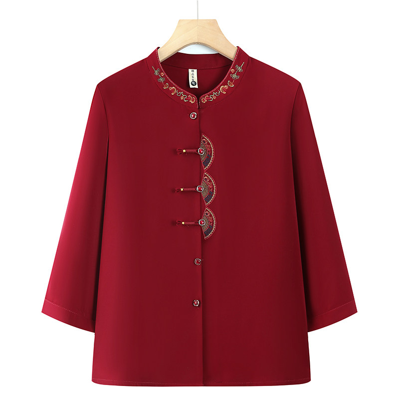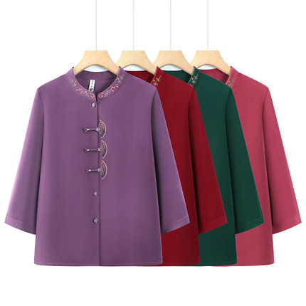 2026新中式刺绣女装衬衫长袖盘扣妈妈装中老年奶奶上衣洋气衬衣三