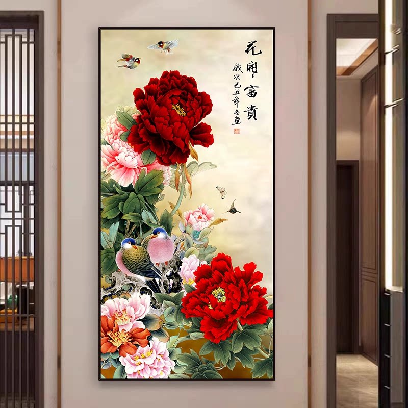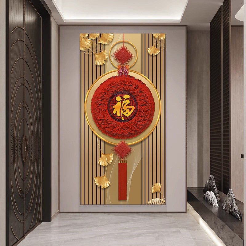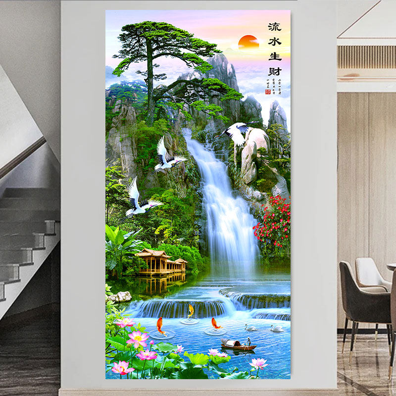 玄关入户正对门壁画山水画自粘