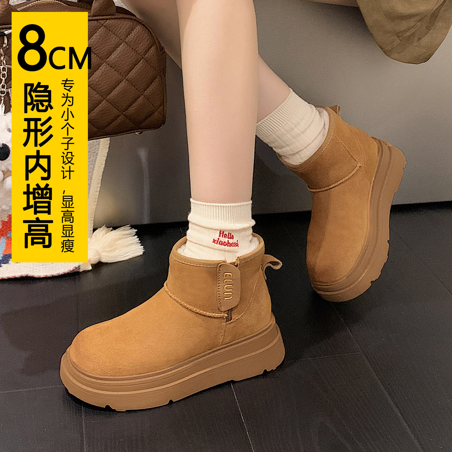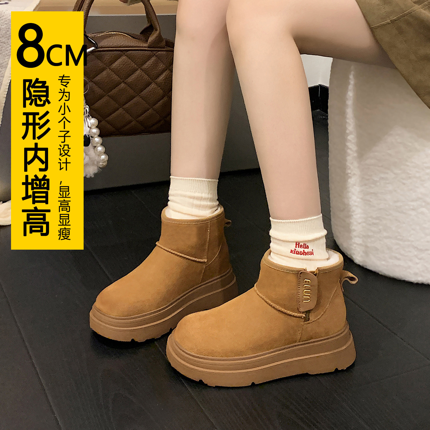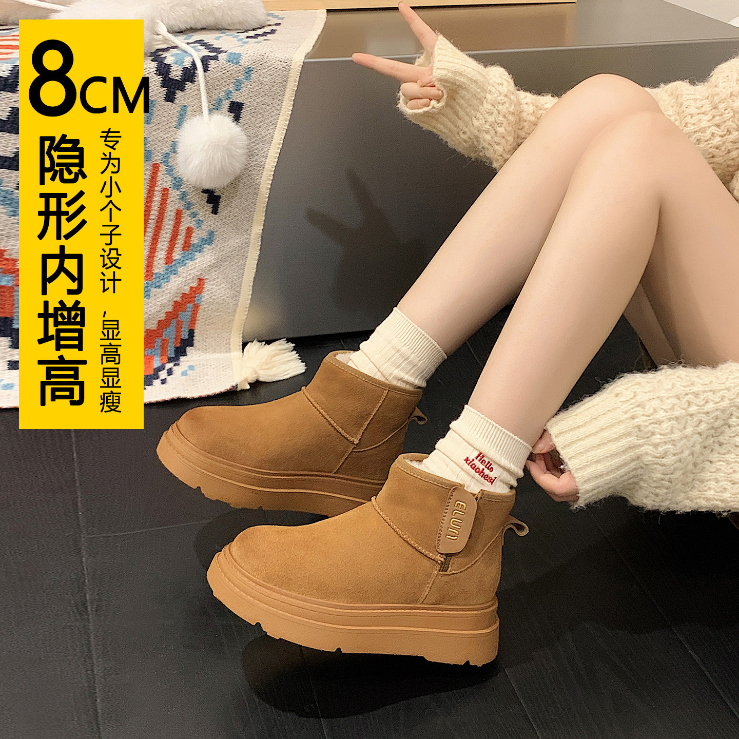 防水防滑雪地靴女款2025新款冬季内增高雪地棉鞋女冬季加绒加厚底