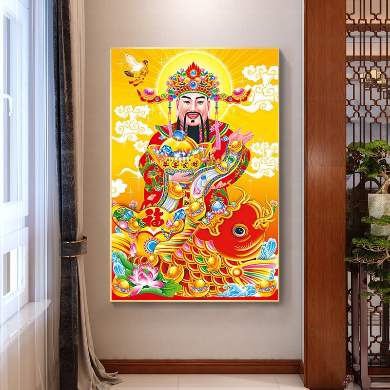 2026新款5d钻石财神爷发财招财贴钻十字绣满钻钻石画客厅玄关走廊