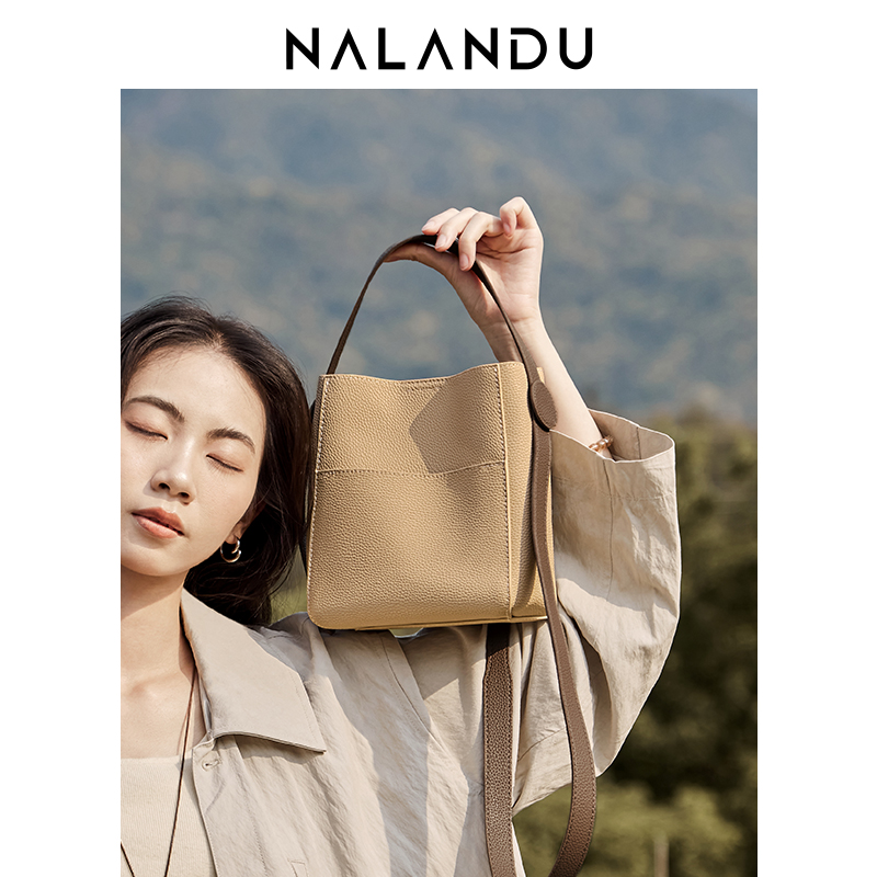 纳兰杜包包女式2025新款超火小水桶包斜挎包通勤手提单肩真皮女包