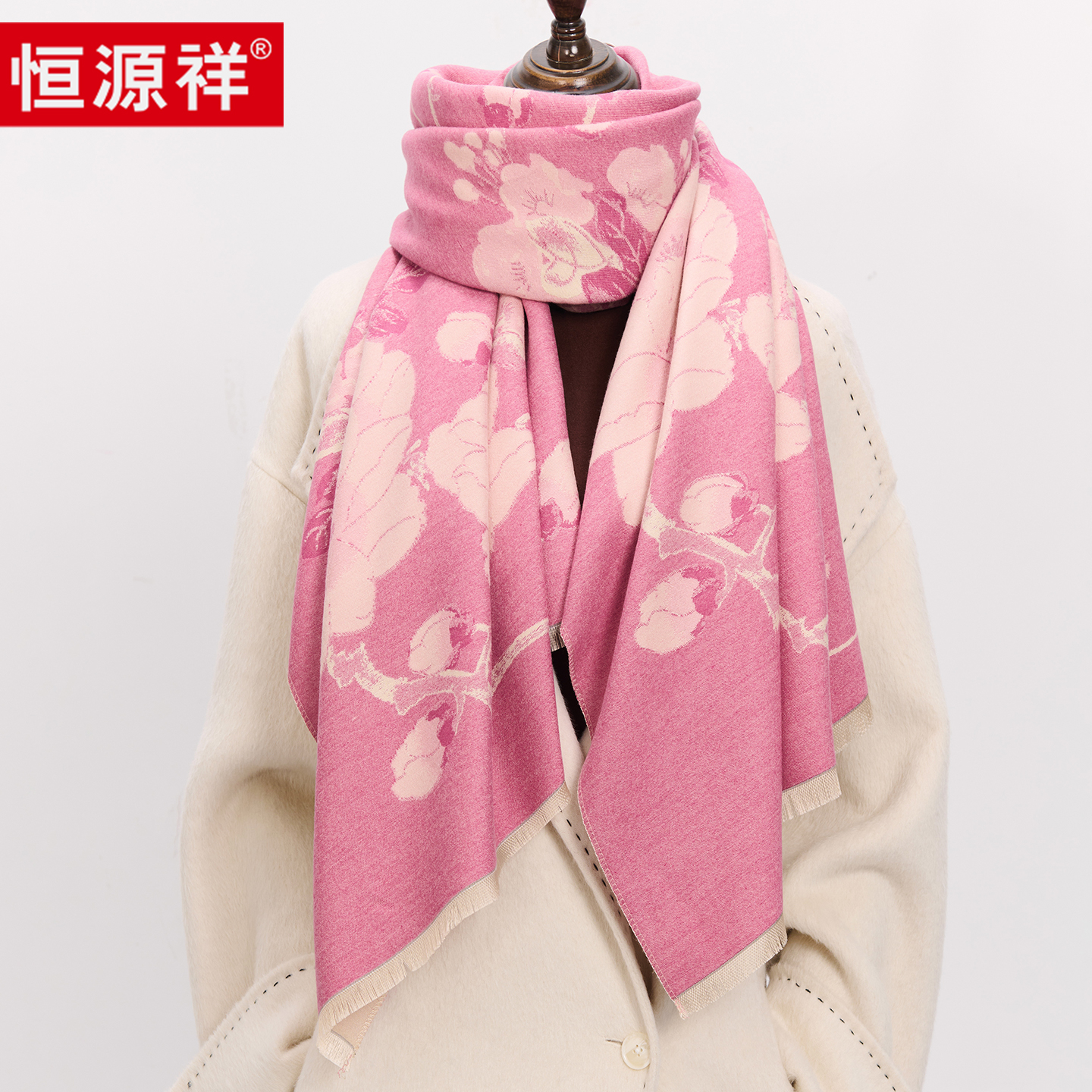 给妈妈的贴心礼!海棠花秋冬季大披肩围巾高档送妈妈生日礼物保暖