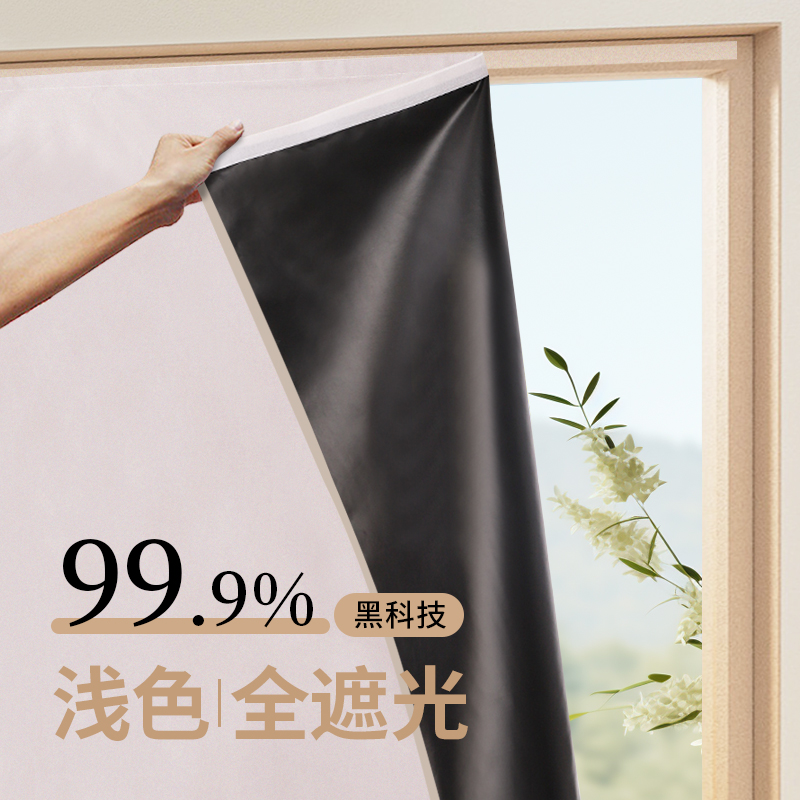 全遮光窗帘布2024新款魔术贴简易粘贴式免打孔安装窗户防晒遮阳帘