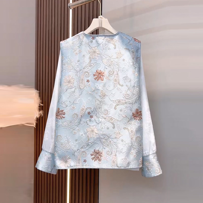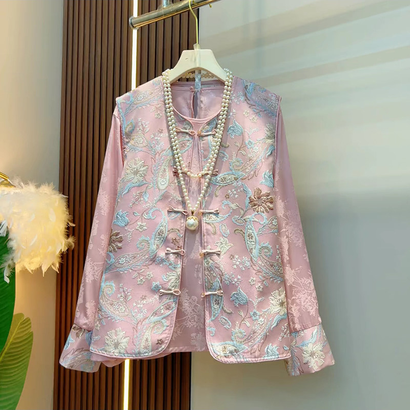 2025春季新款大码女装胖MM欧洲站国风盘扣提花马甲打底衫两件套潮
