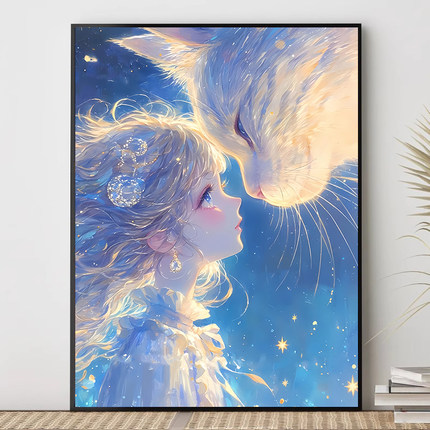 猫咪女孩数字油画diy填充填色手工手绘治愈系丙烯油彩画2026新款