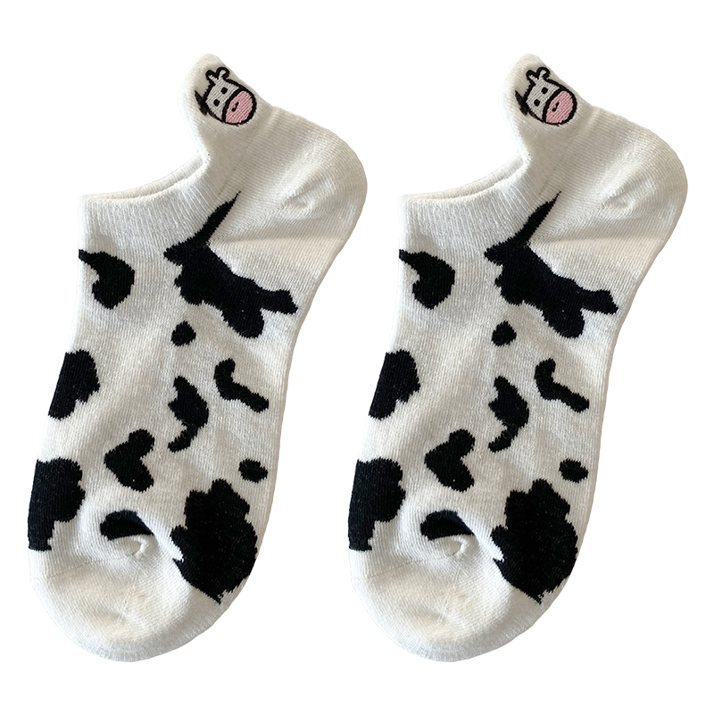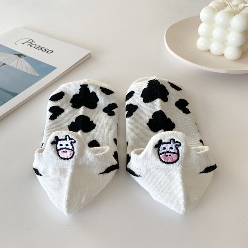 黑白刺绣袜子女ins潮短袜浅口夏季薄款韩国卡通奶牛可爱日系船袜