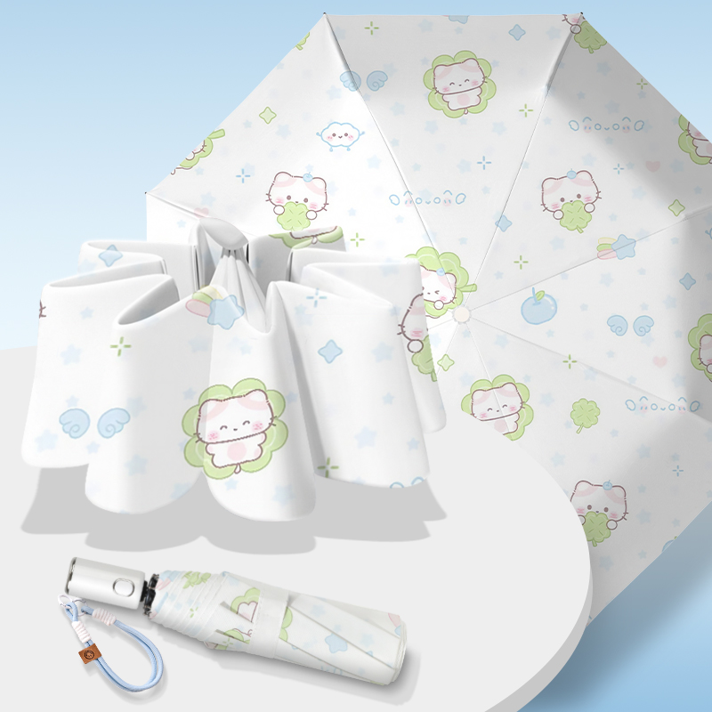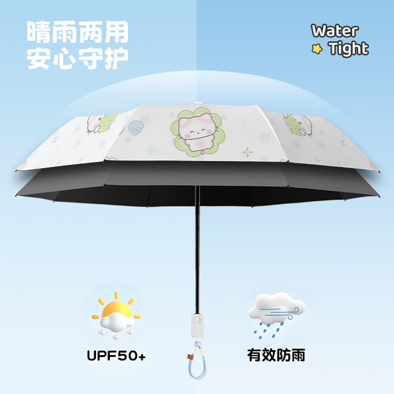小清新猫咪遮阳伞全自动晴雨伞女两用黑胶防晒紫外线折叠太阳伞