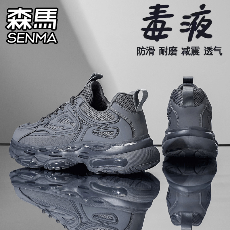 森马男鞋2025新款秋季男士运动休闲跑步气垫减震增高黑色老爹潮鞋