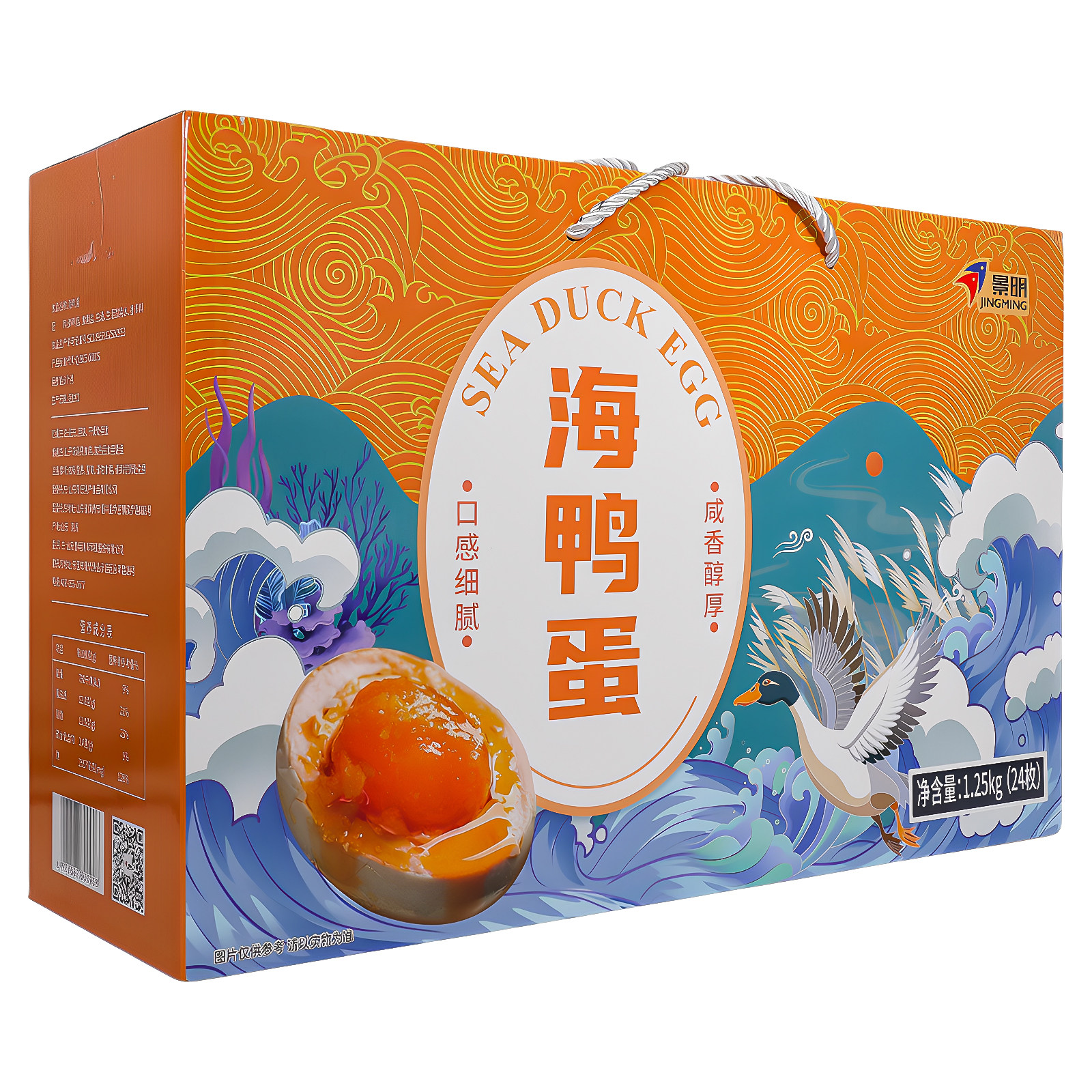 山东黄河口景明水产大号海鸭蛋咸鸭蛋制品多油24枚独立装礼盒送礼