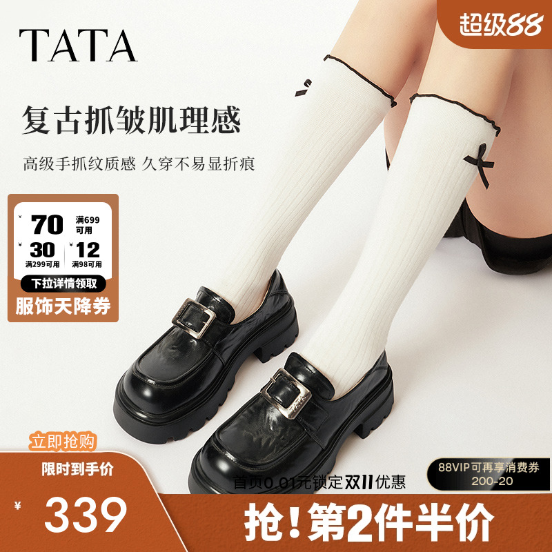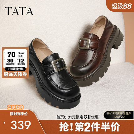 TATA他她厚底复古乐福鞋女鞋英伦JK小皮鞋单鞋2025春新款CW701AM5