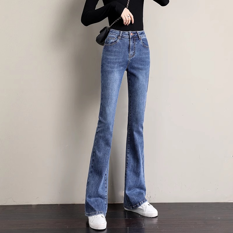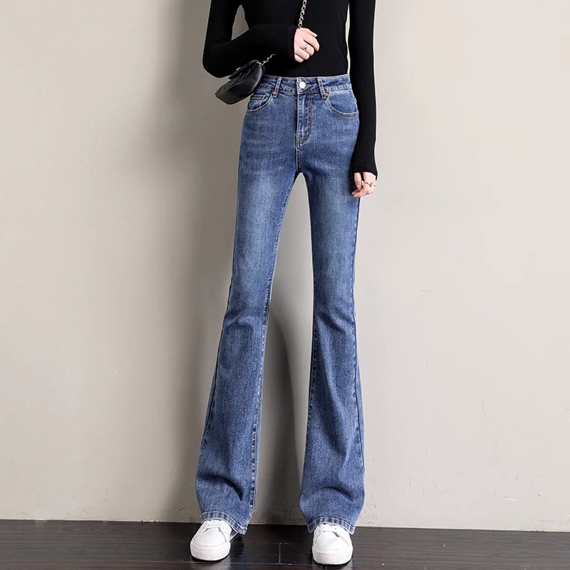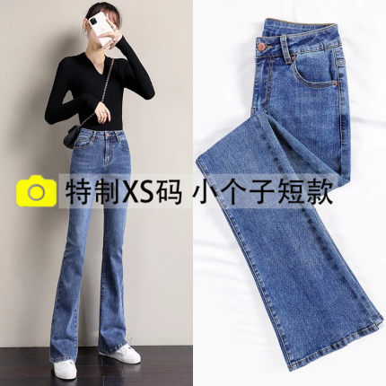 春秋喇叭牛仔裤女新款修身小个子九分显高显瘦弹力垂感高腰微喇裤