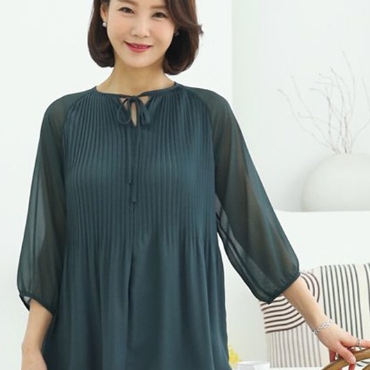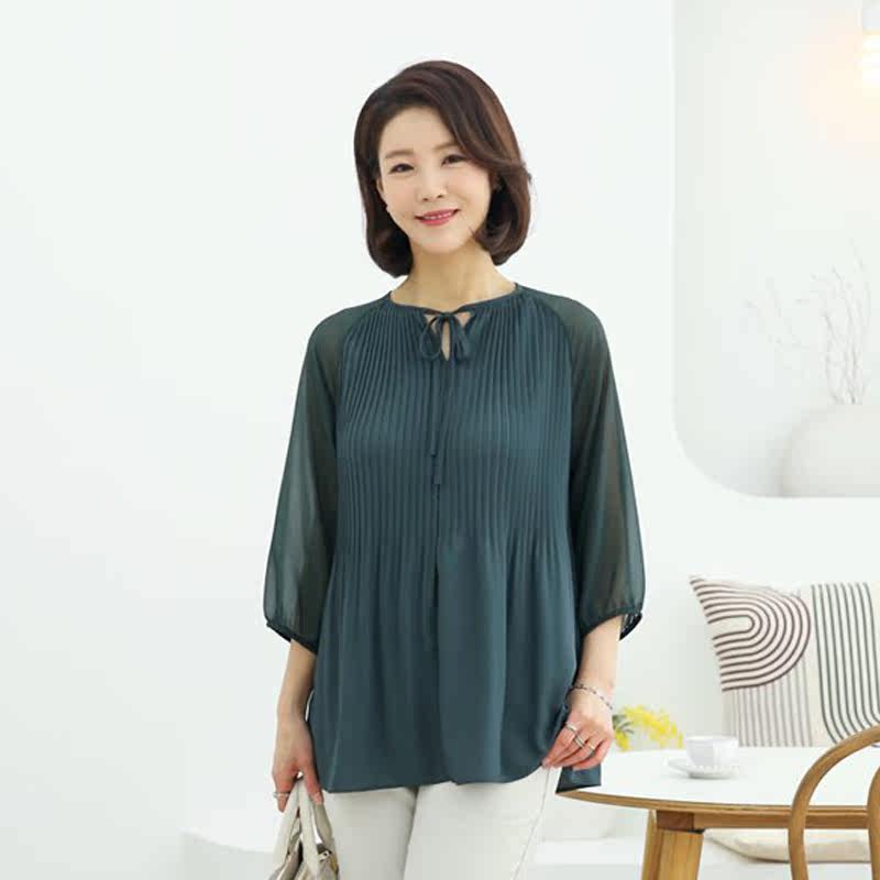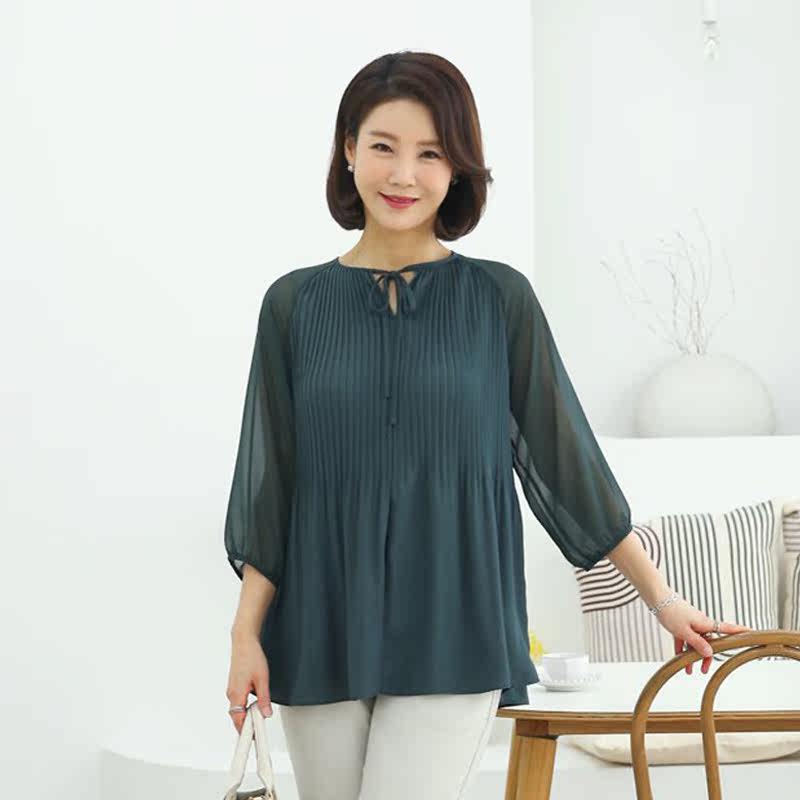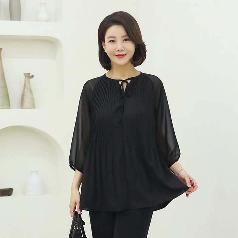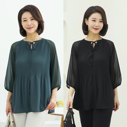 2025韩国春时尚女宽松直筒宽松大码甜美七分袖A版中长雪纺百褶衫