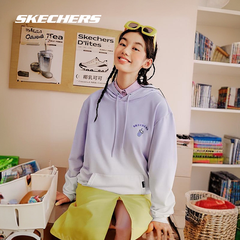Skechers斯凯奇男女同款秋季渐变奶茶熊连帽卫衣柔软亲肤运动上衣