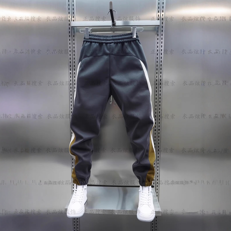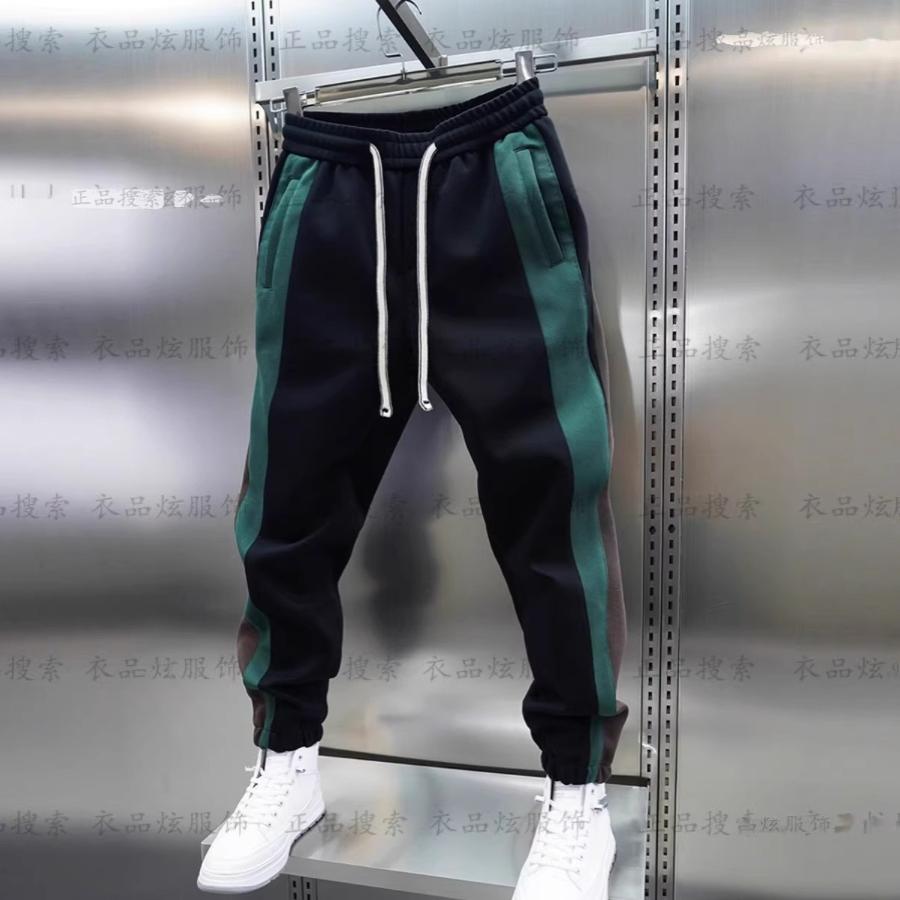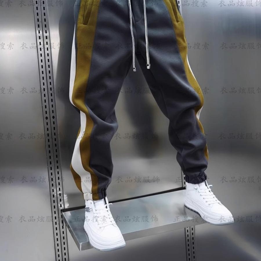 2024秋季新款男士拼接运动卫裤痞帅松紧腰束脚哈伦裤百搭休闲裤子