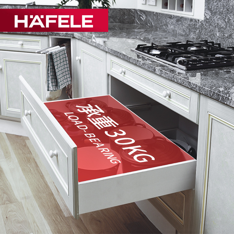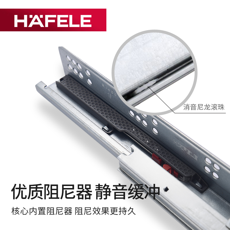HAFELE德国海福乐自闭带缓冲抽屉三节隐藏式滑轨全拉出阻尼托底轨