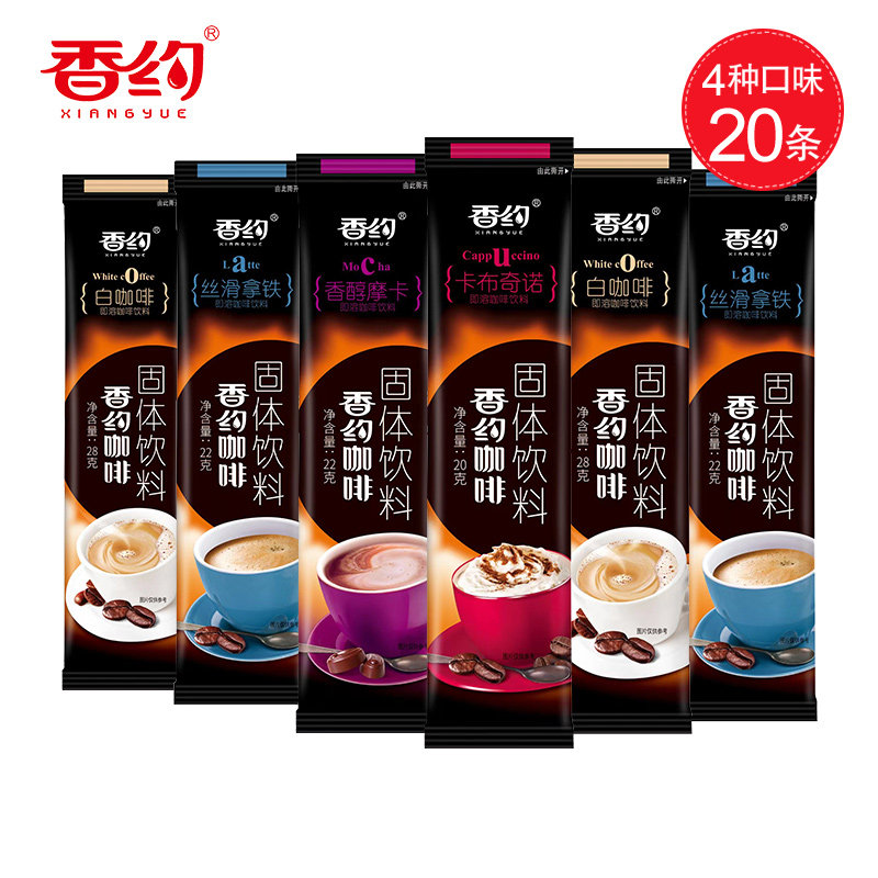 香约咖啡相约20包组合拿铁/卡布奇诺/白咖啡粉速溶冲饮三合一咖啡