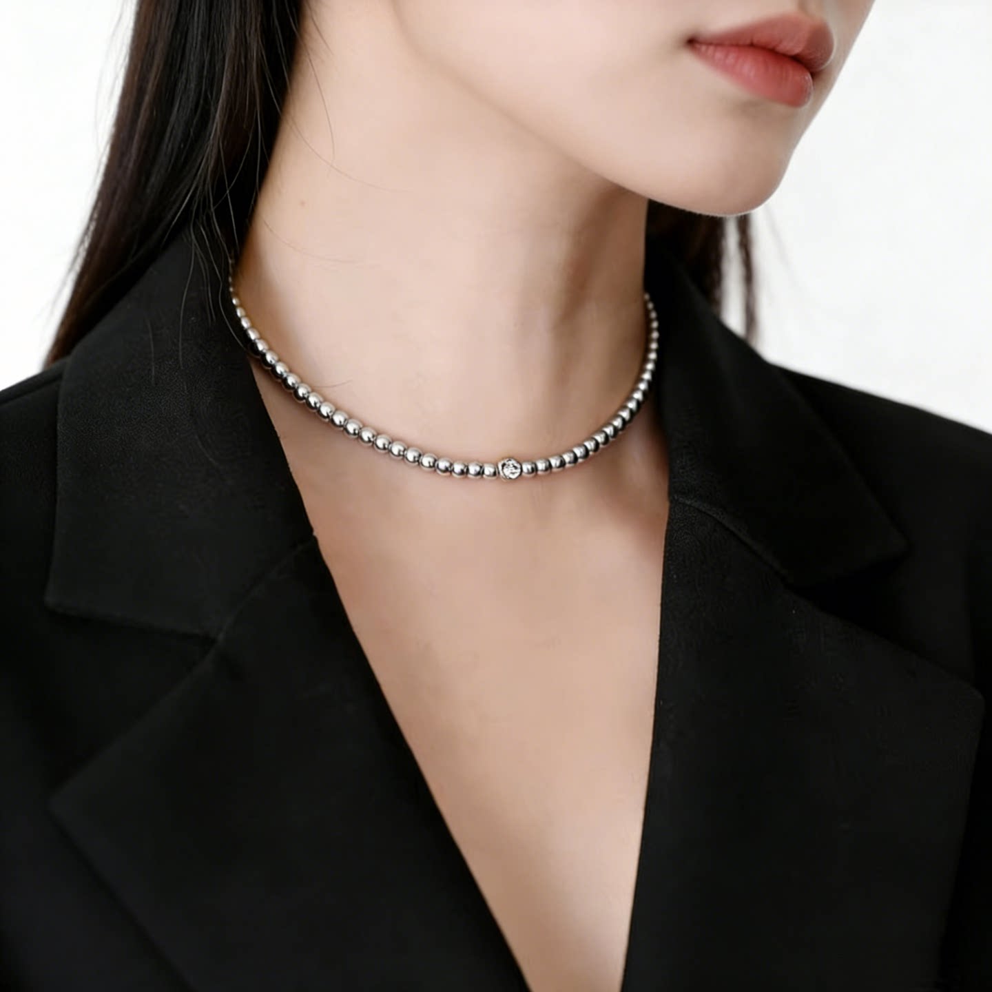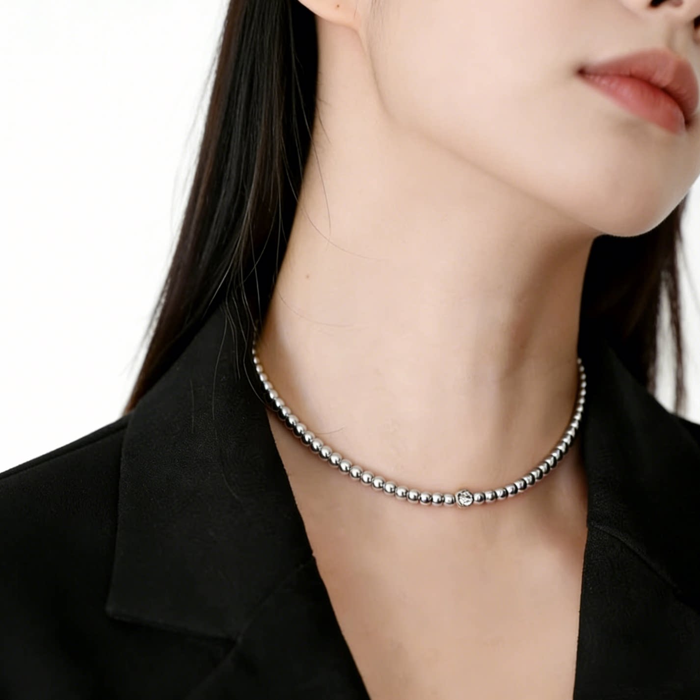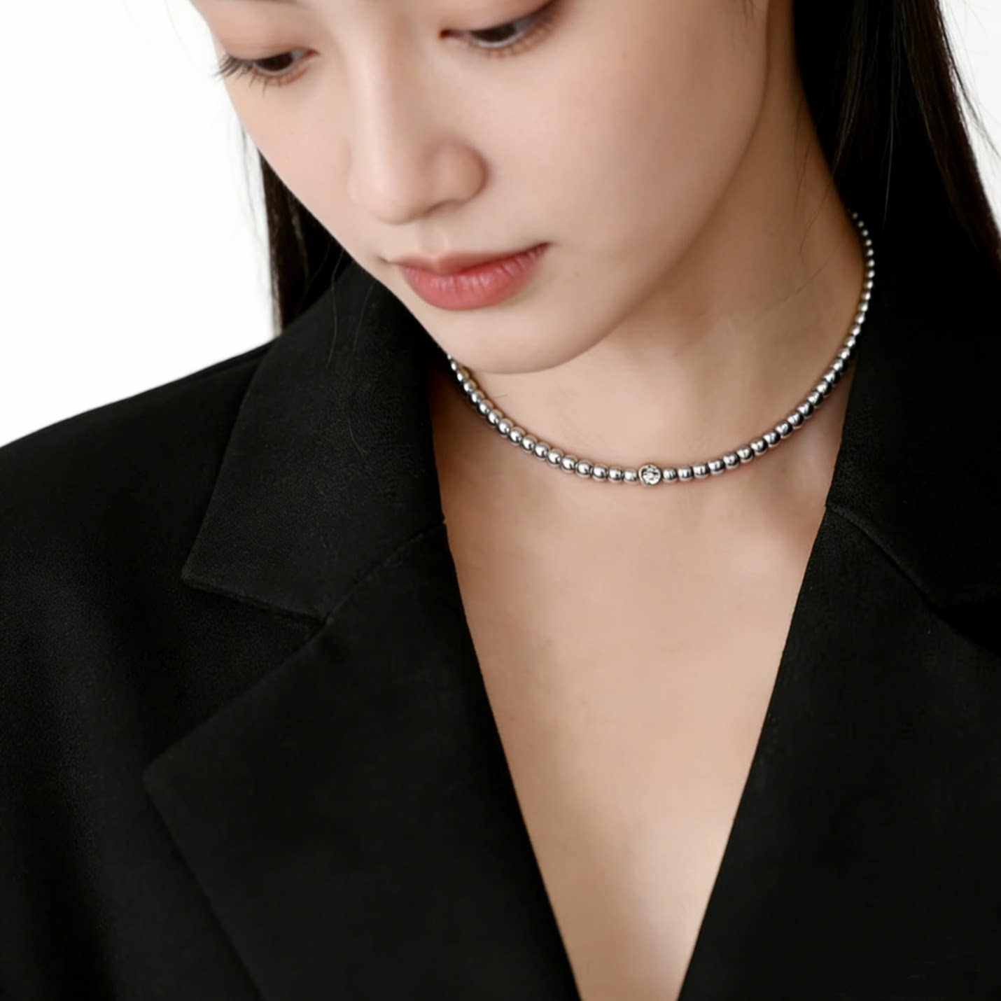 不掉色~ins风银色水晶串珠项链女锁骨链颈链镀18K金轻奢复古配饰