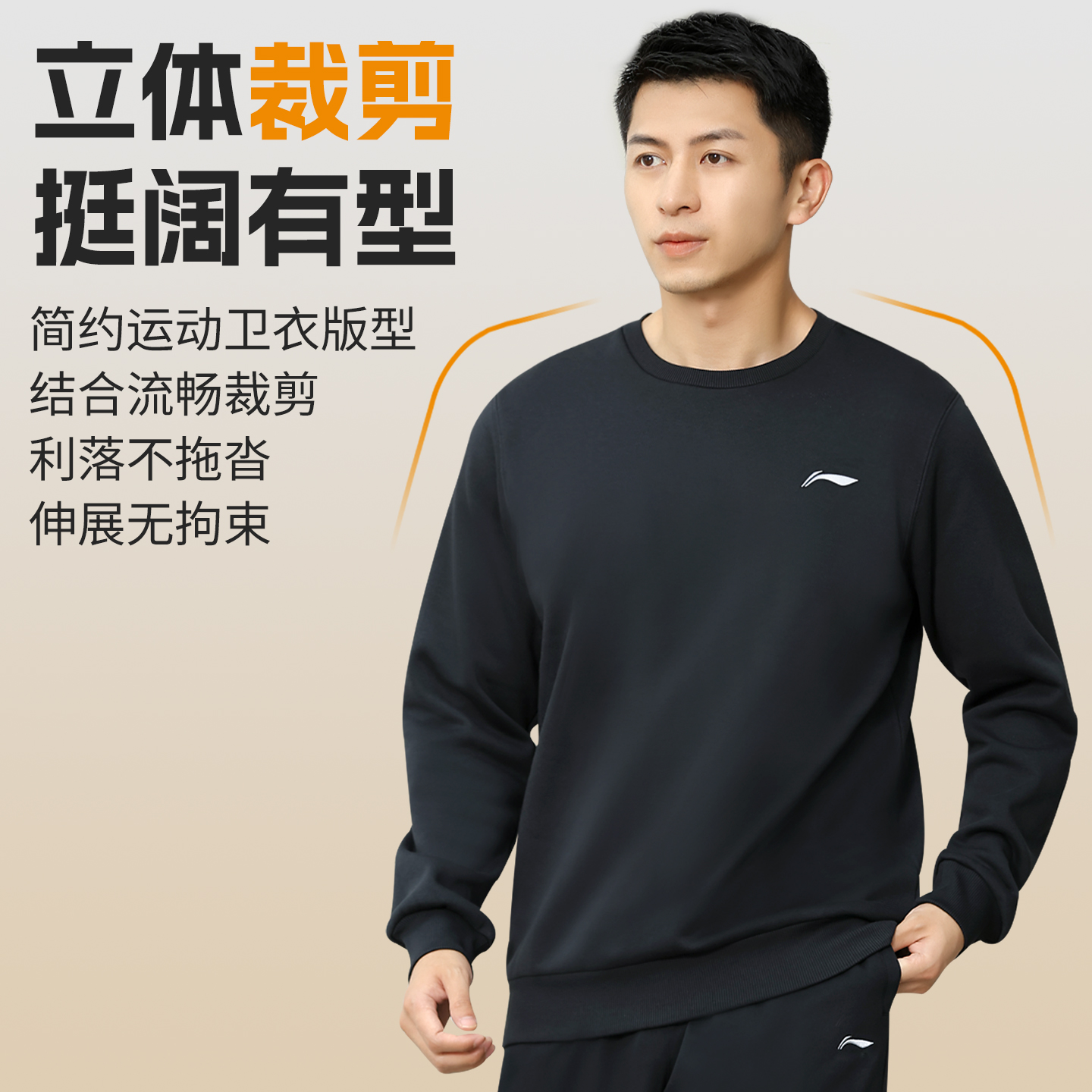 李宁加绒运动套装男款秋冬2025新款圆领卫衣卫裤跑步长裤宽松正牌