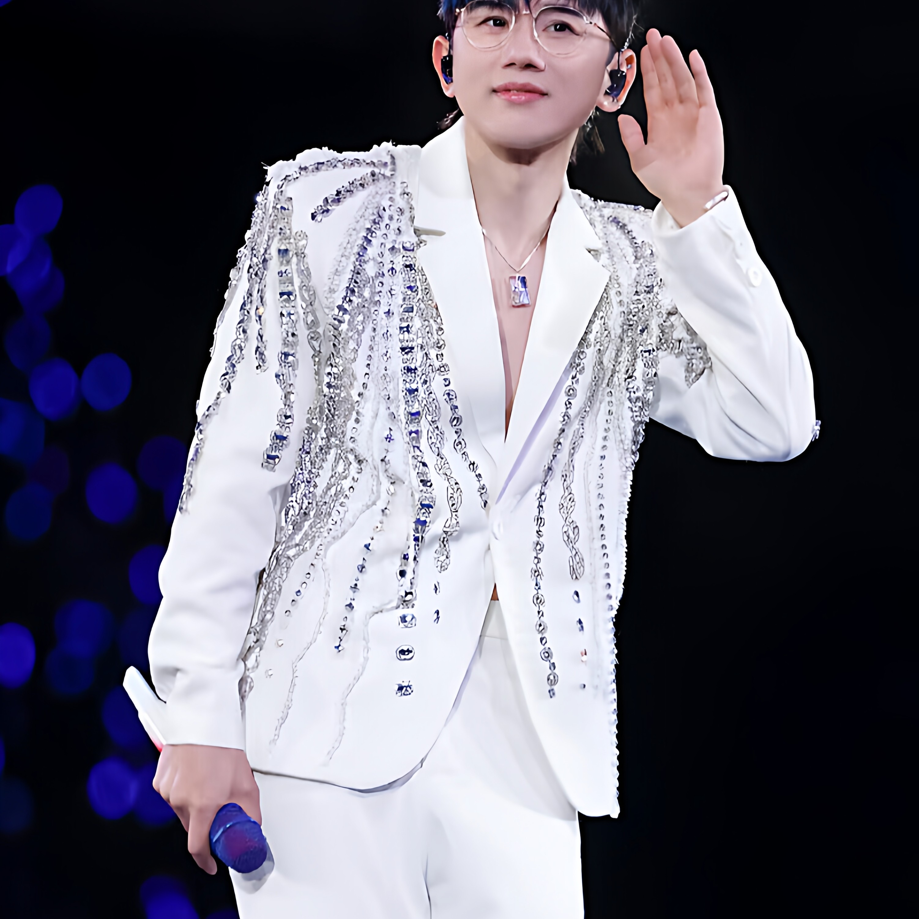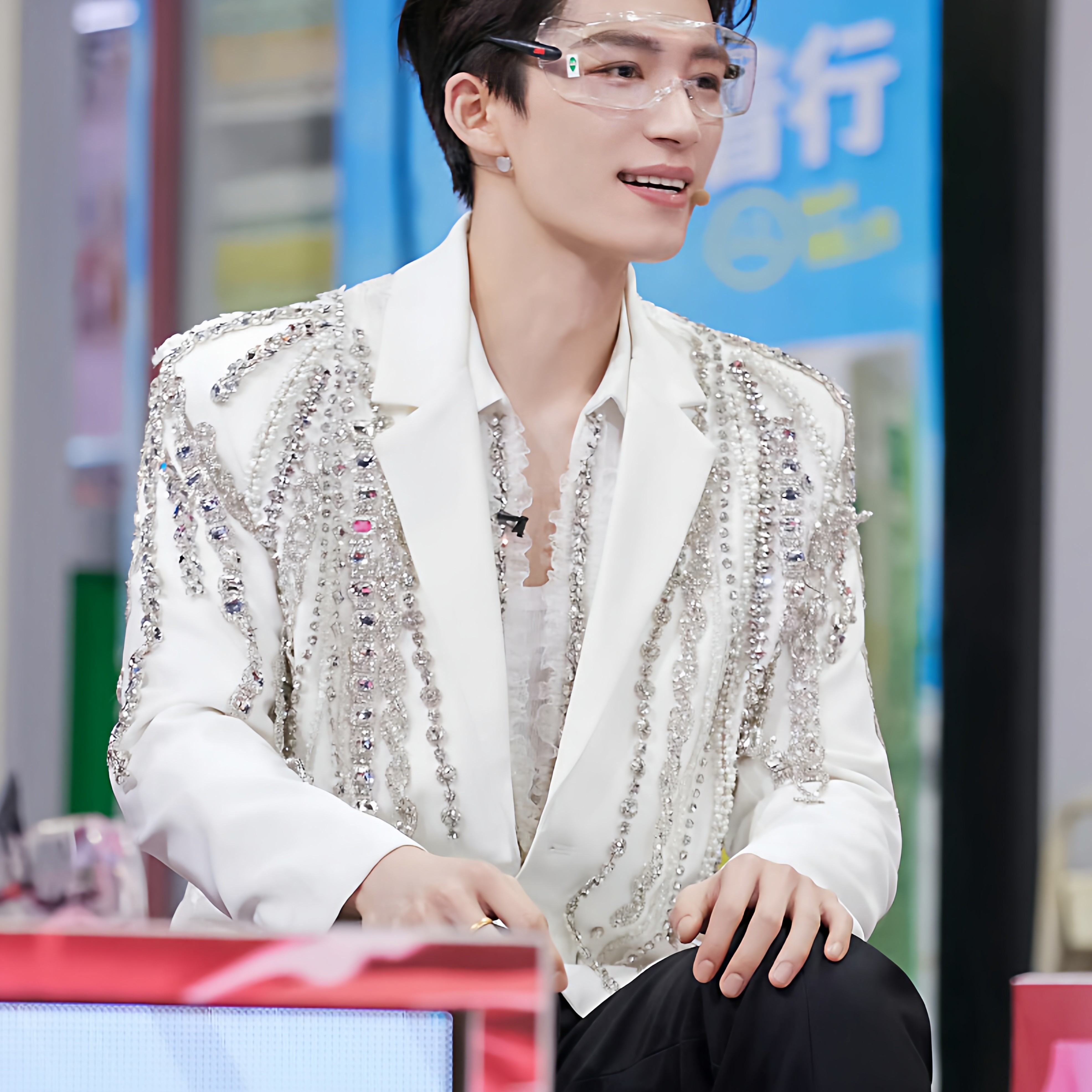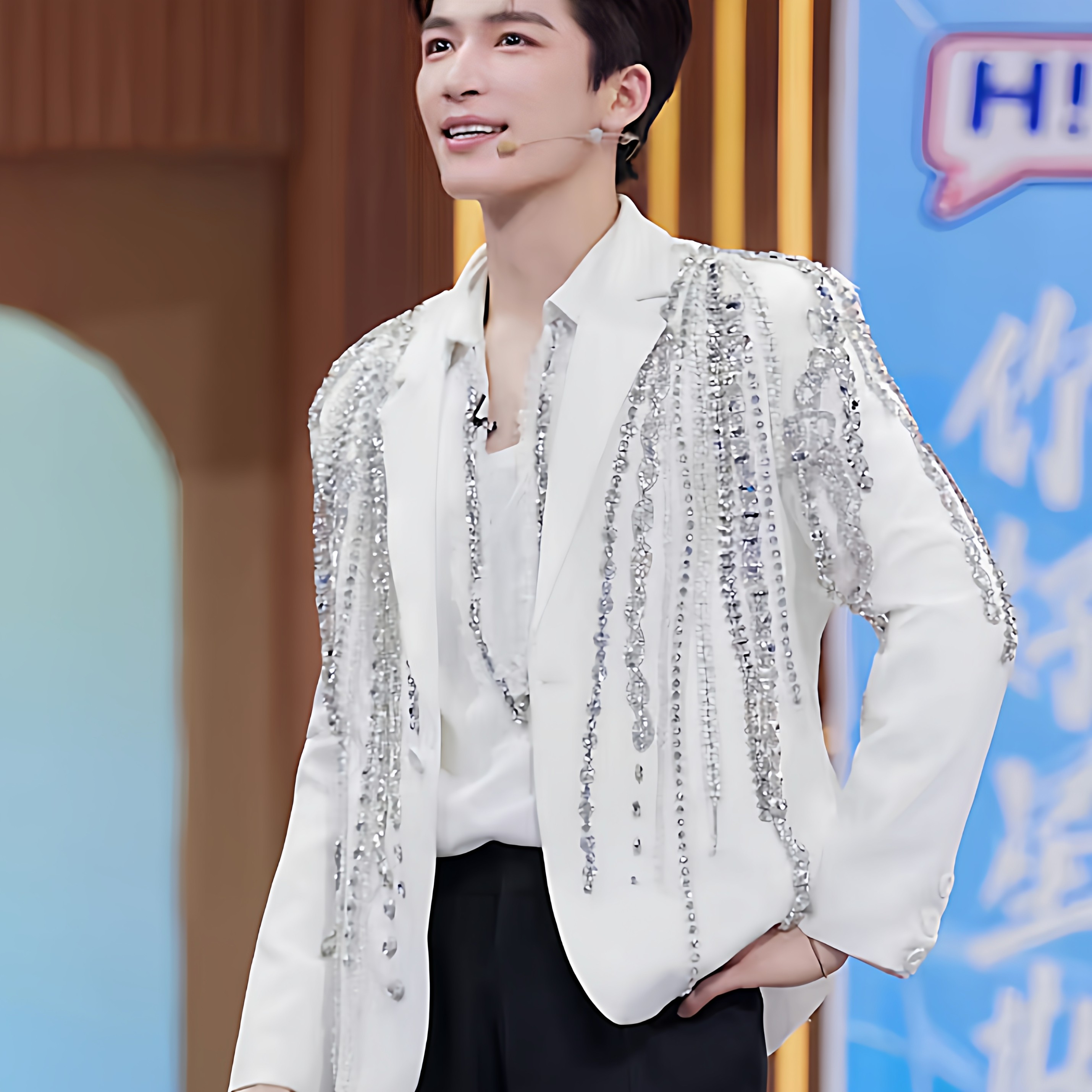 王星越同款白色绣钻轻奢西装