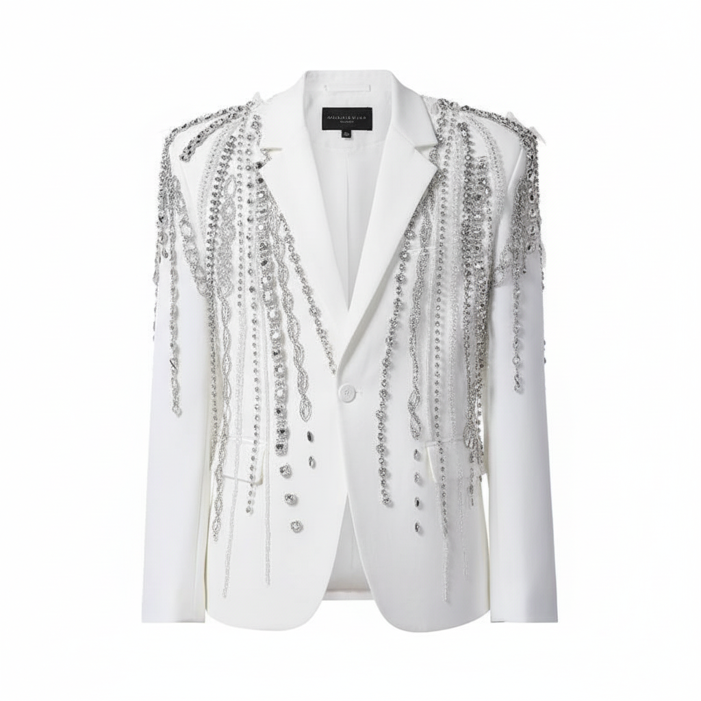 王星越同款白色高定轻奢链条手工绣钻西装重工高级感痞帅气质西服