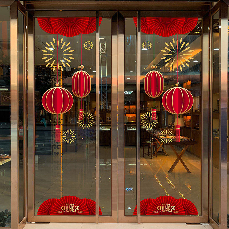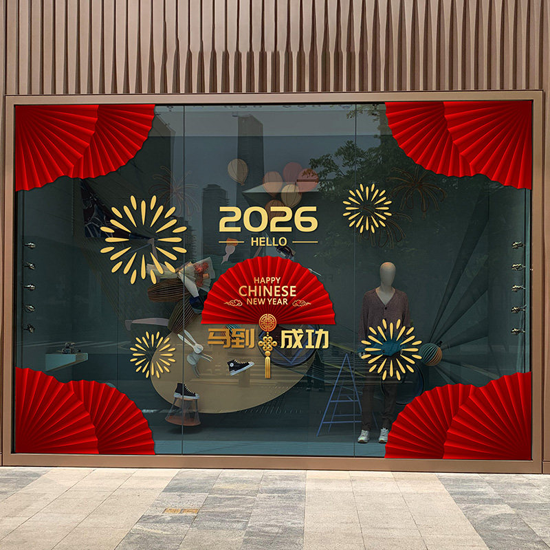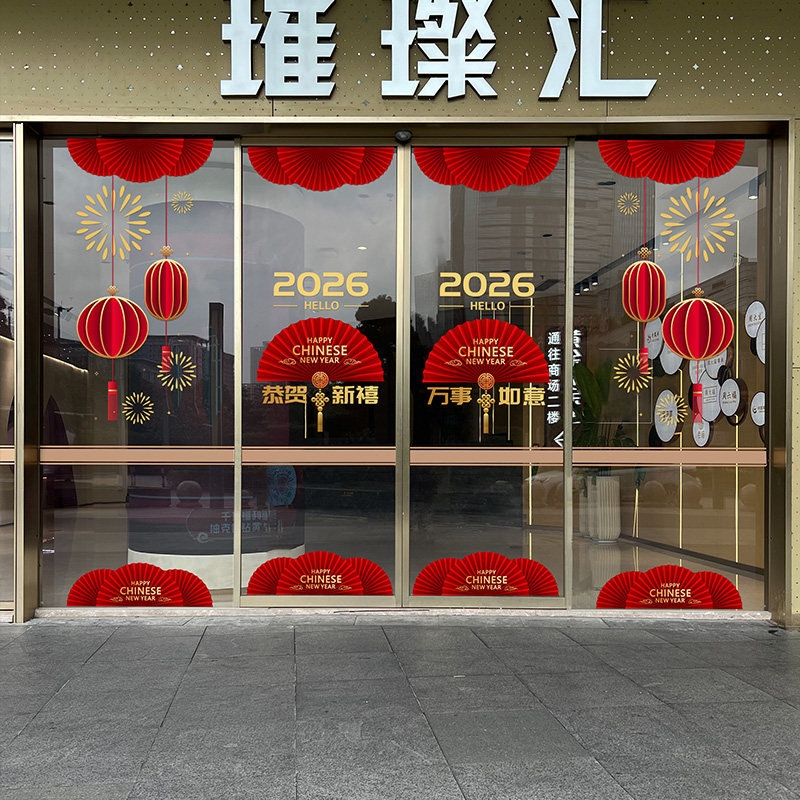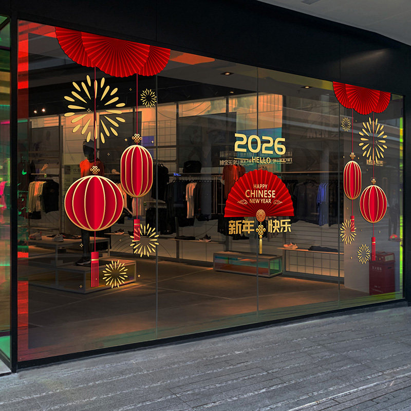 2026新春店商铺玻璃门橱窗贴纸服装店4S店售楼部节日氛围布置贴画