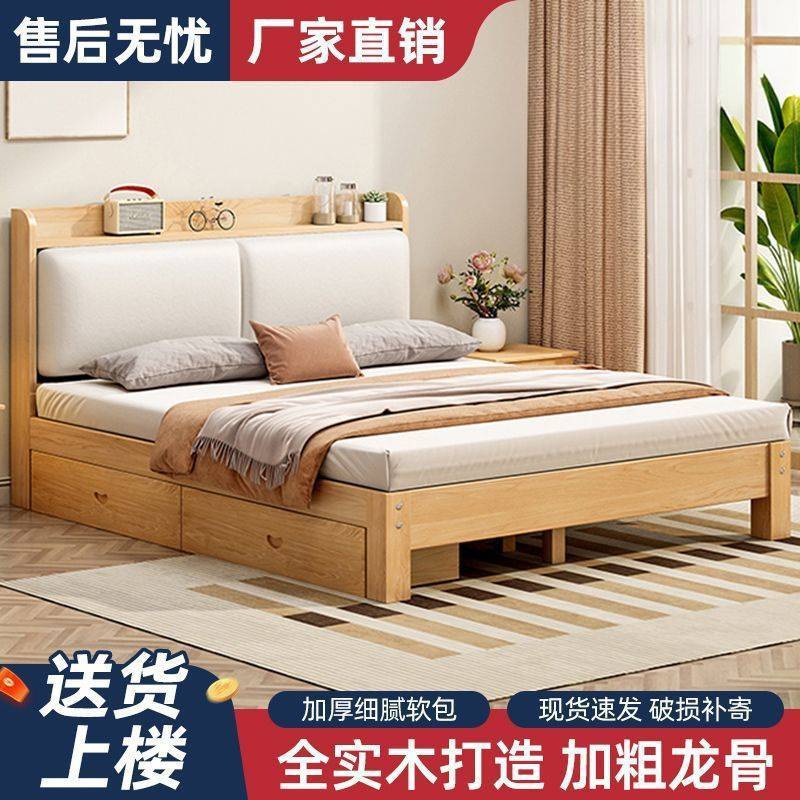实木床现代简约全实木.米.米单人床家用双人床小户型出租房床松木
