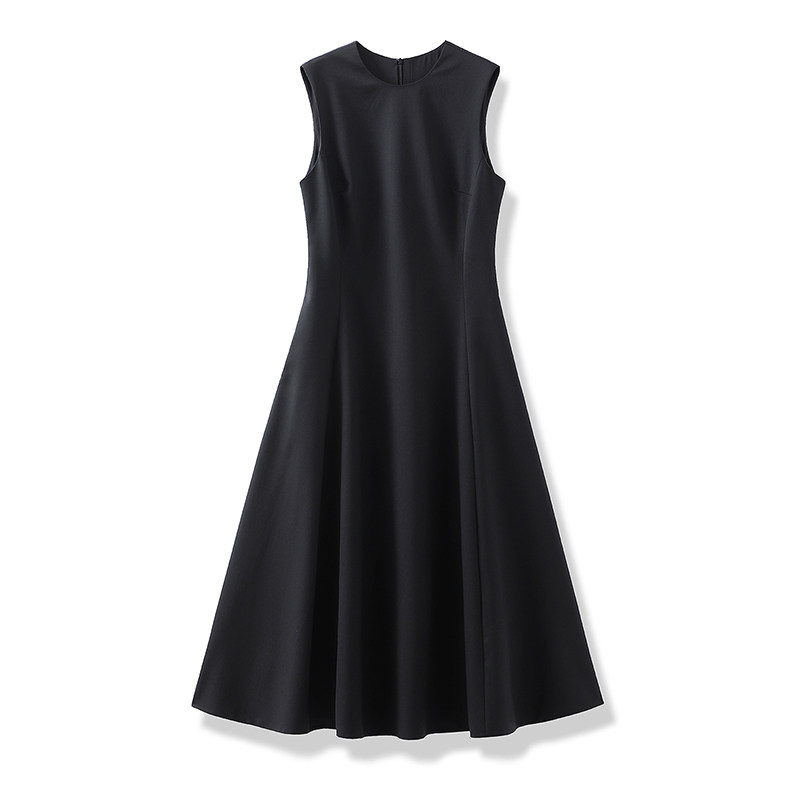 优雅气质背心连衣裙女25秋冬高级精纺羊绒羊毛无袖收腰中长a字裙