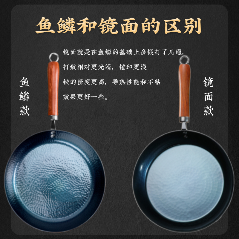 正品纯手工铁锅小煎锅无涂层平底锅不粘锅家用牛排烙饼产地章丘