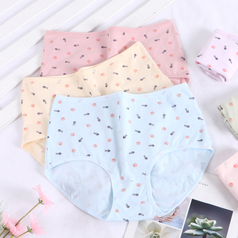 加肥加大码高腰纯棉女内裤胖mm清新甜美少女学生可爱三角透气短裤