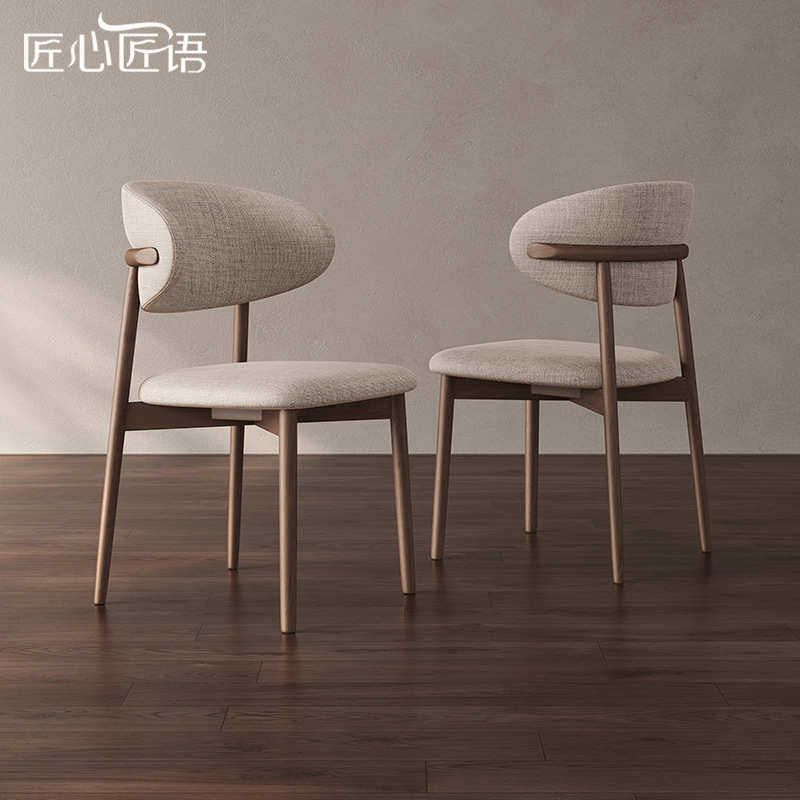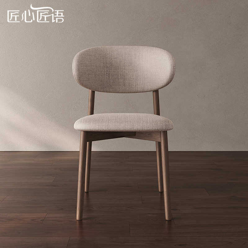 北欧实木餐椅酒店餐厅棉麻布洽谈椅子皮椅家用凳子软包实木靠背椅