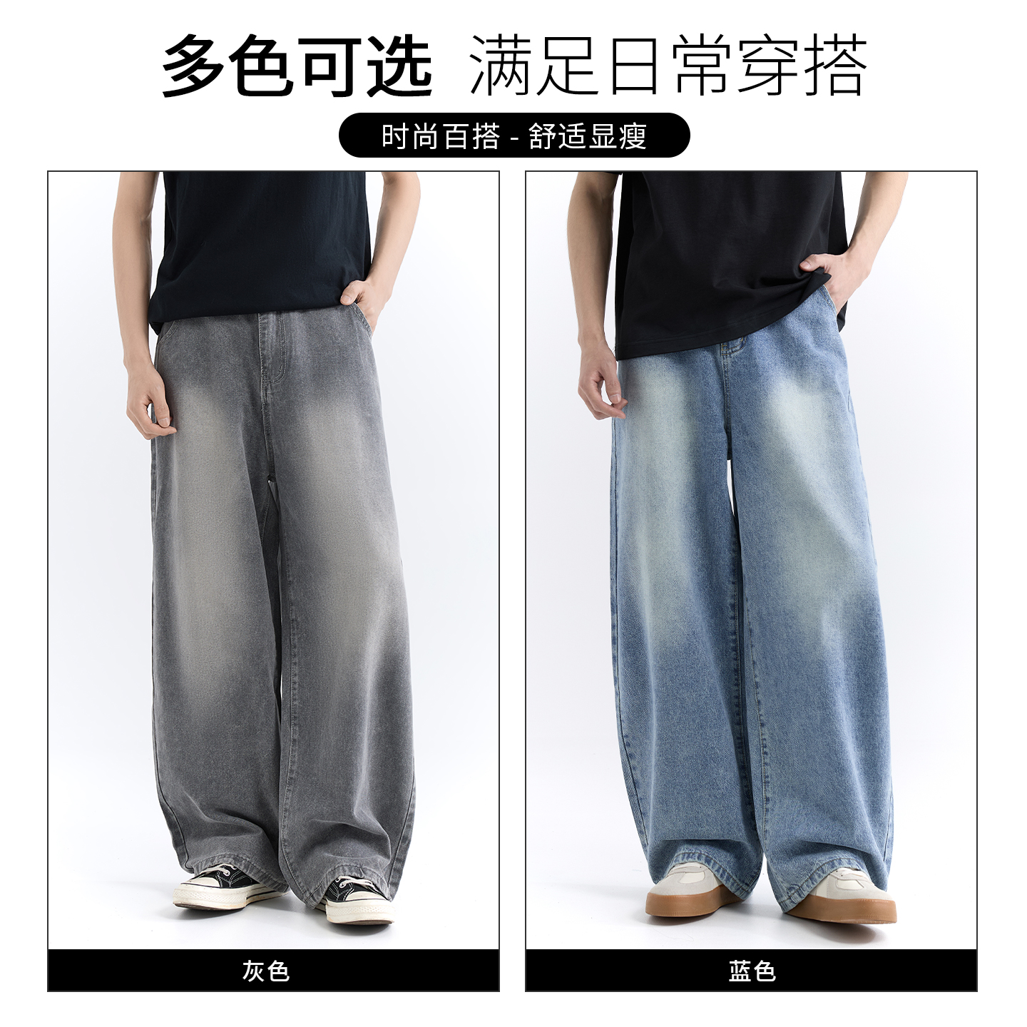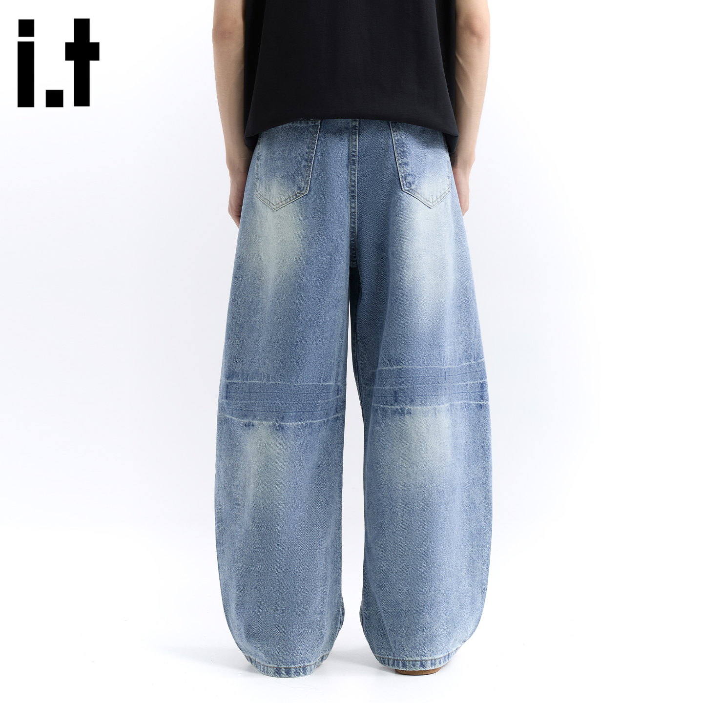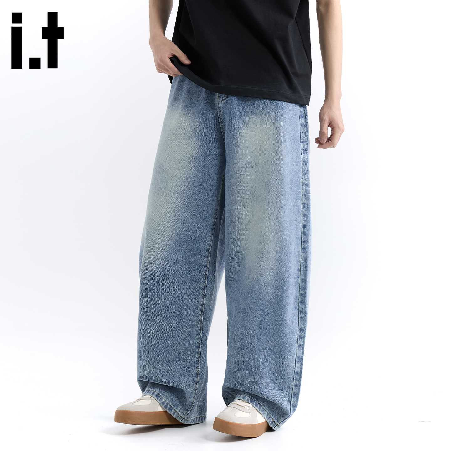 it :5cm/FIVECM美式简约水洗蓝色阔腿牛仔裤男女2025夏季宽松长裤