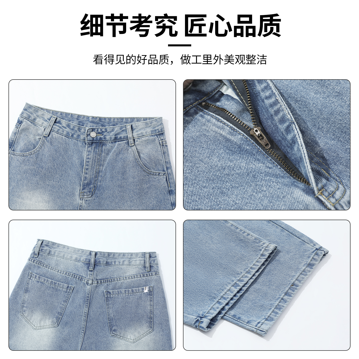 IT'S5cm美式简约蓝色牛仔裤