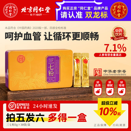 北京同仁堂三七粉正品旗舰店云南文山特级田七粉独立包装中药饮片