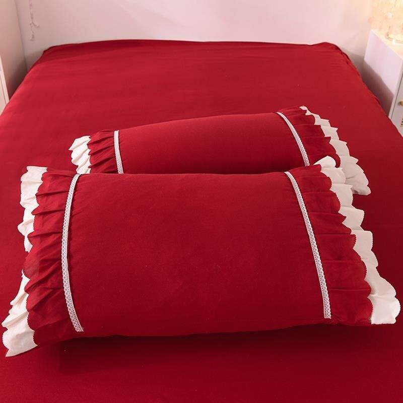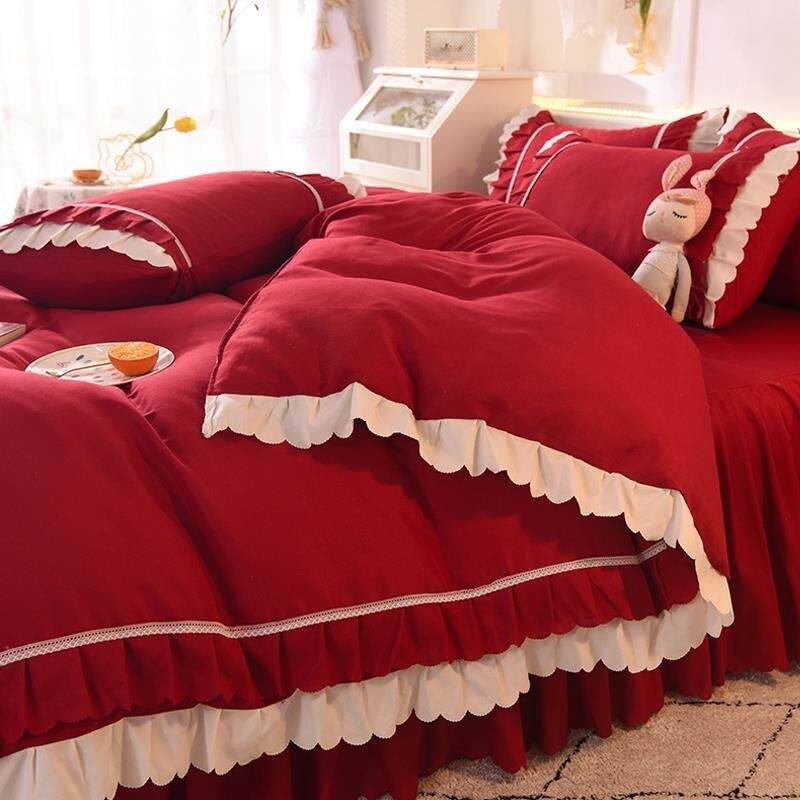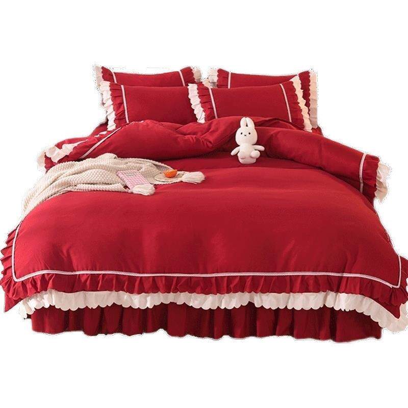 韩式公主风床裙四件枕套水棉红色结婚洗被套厂家直供床单单套三件
