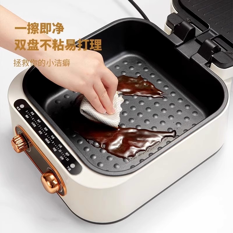 锅蒸煮一体火锅日本YPG家用电饼铛可拆洗多功能双面煎烤加深料理